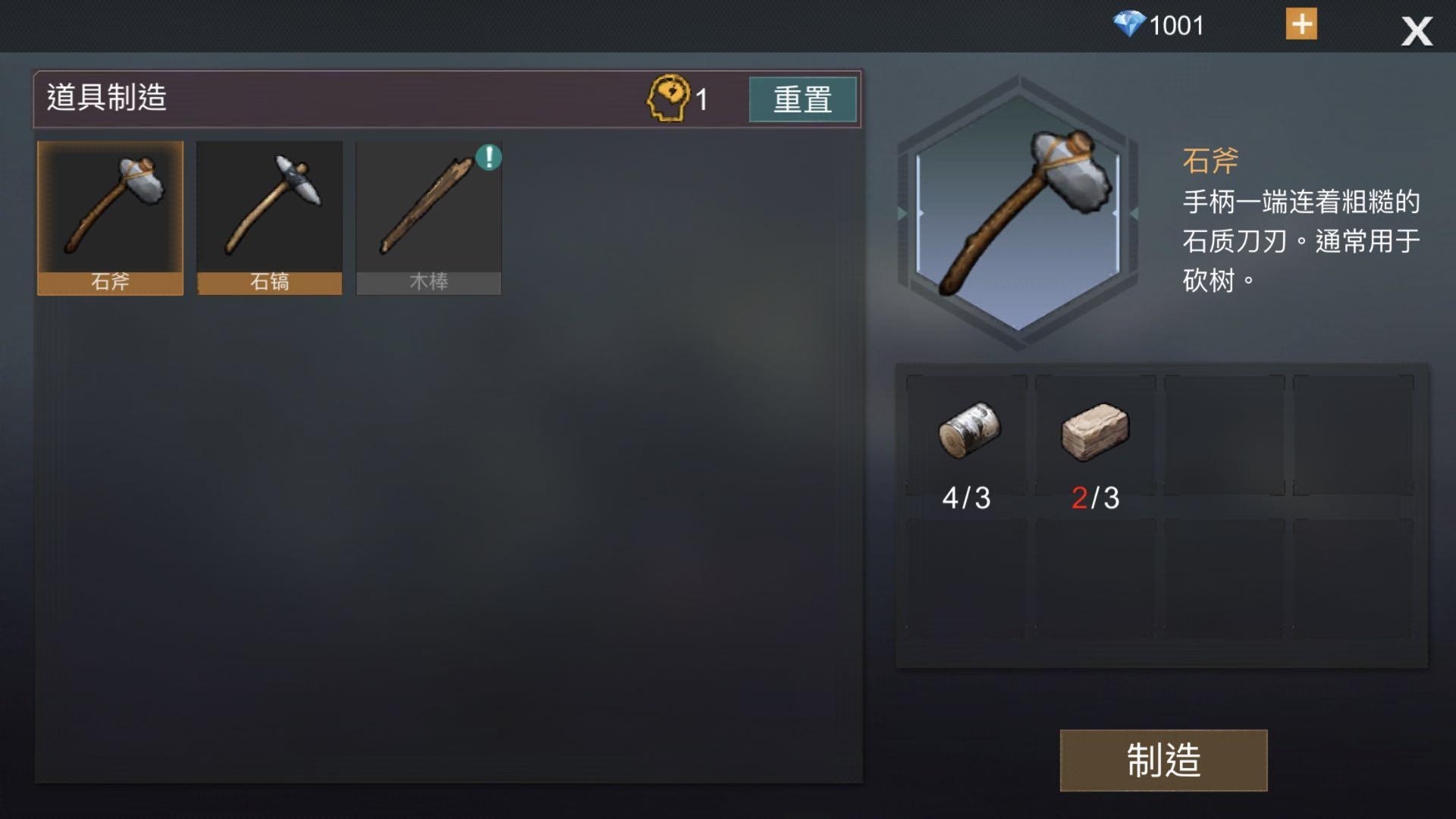 ⑤当对象为树木时,以斧形icon呈现,若背包有石斧或铁斧时,即可通过此按钮采集木料;