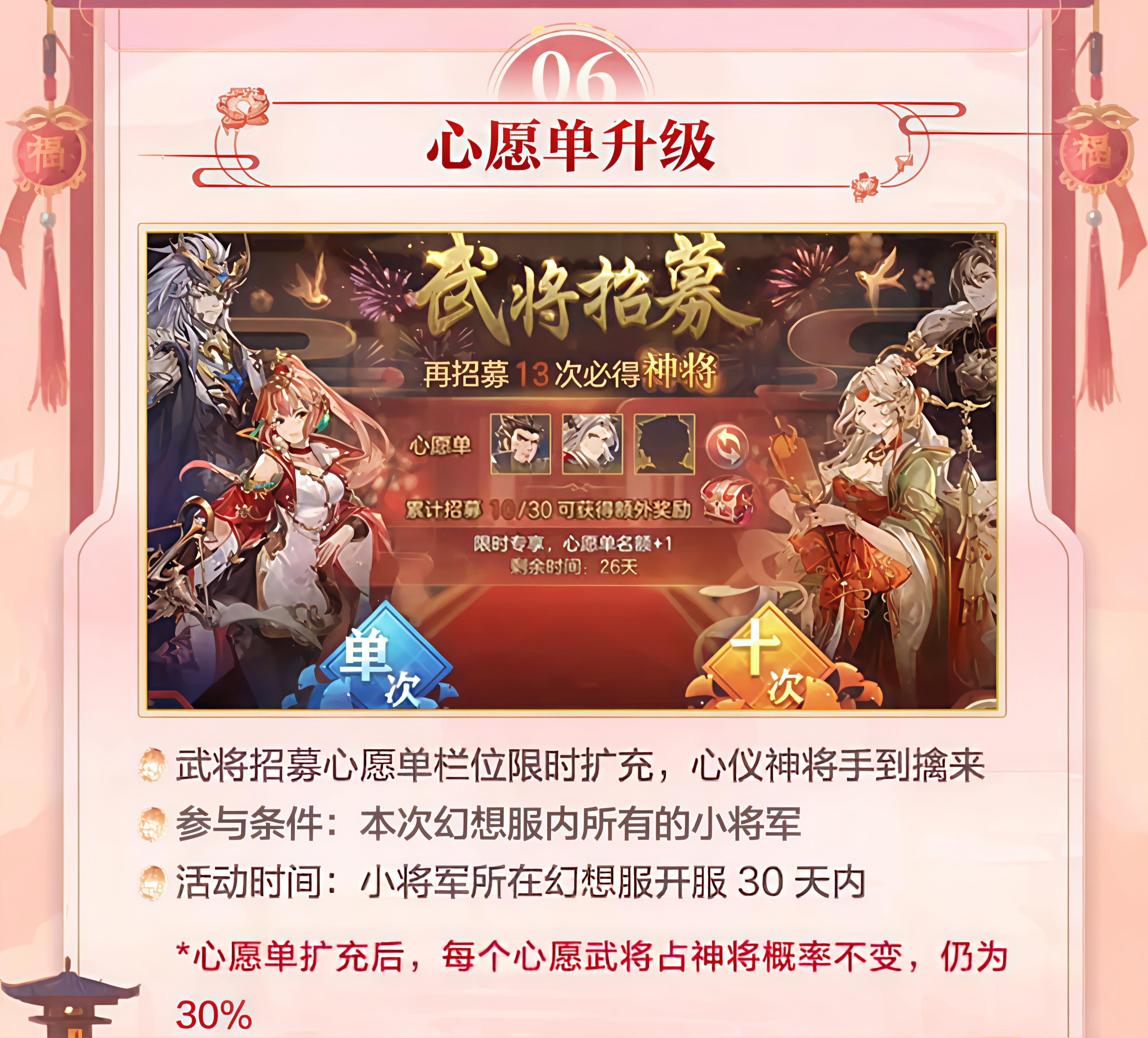 🔸幻想服开服30天内心愿单栏位会加1,总共可选3个心愿,这里给大家整理了心愿武将抽取建议