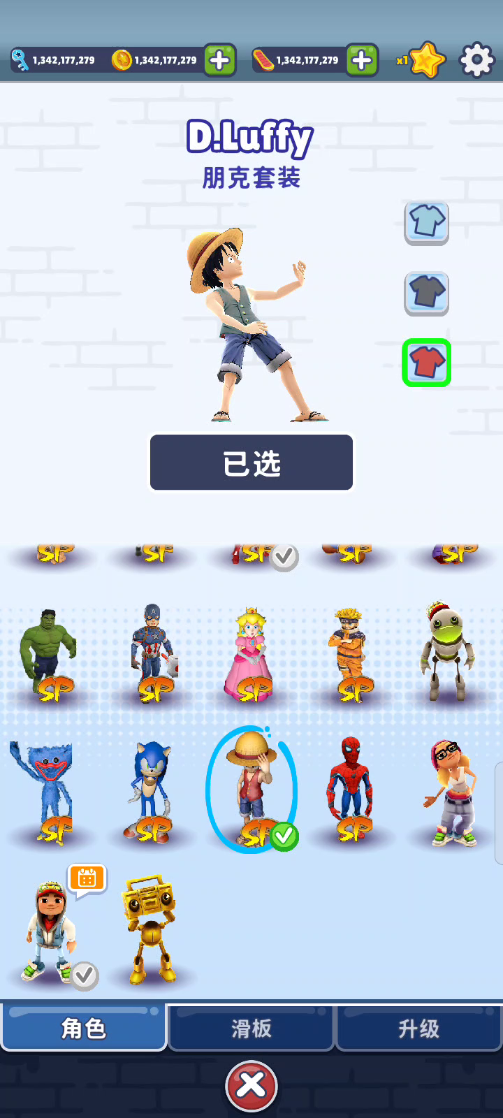 谁不想在地铁跑酷里面玩一玩路飞的呢?