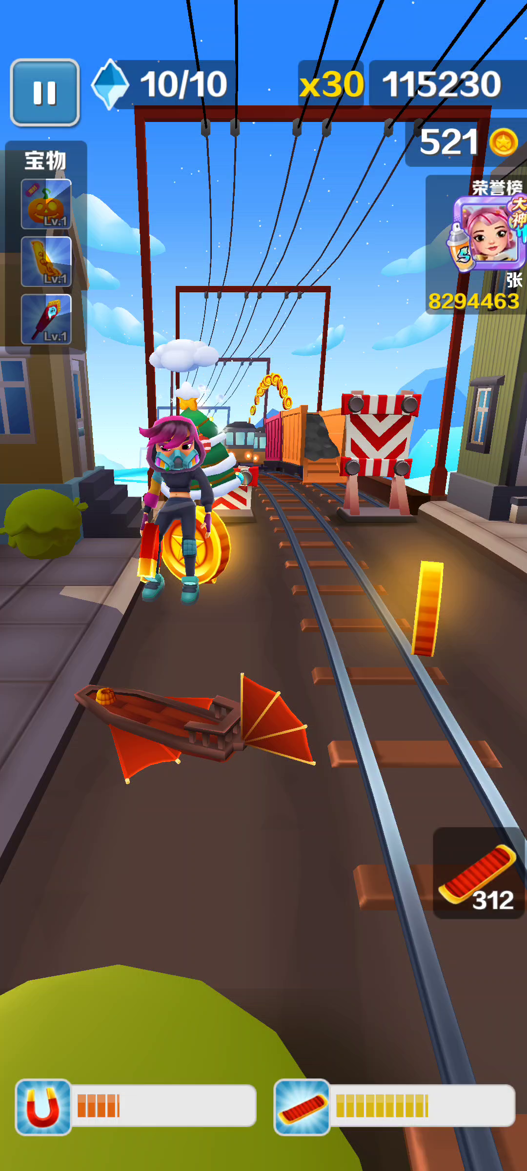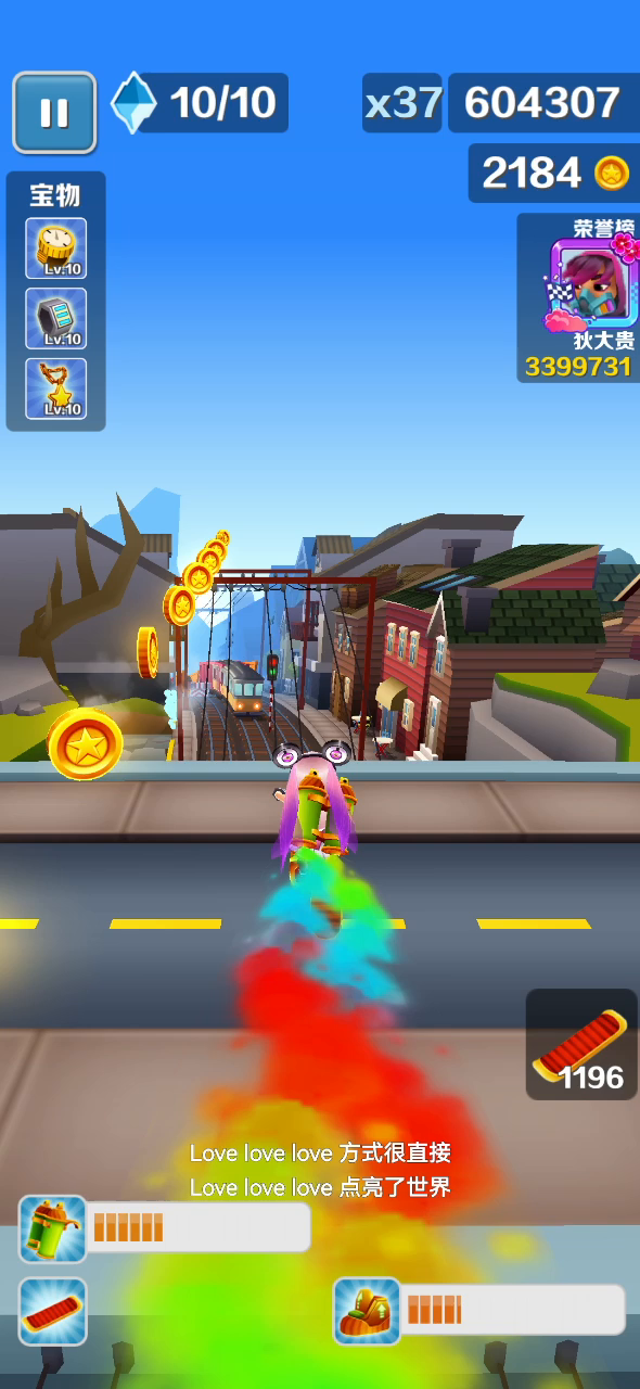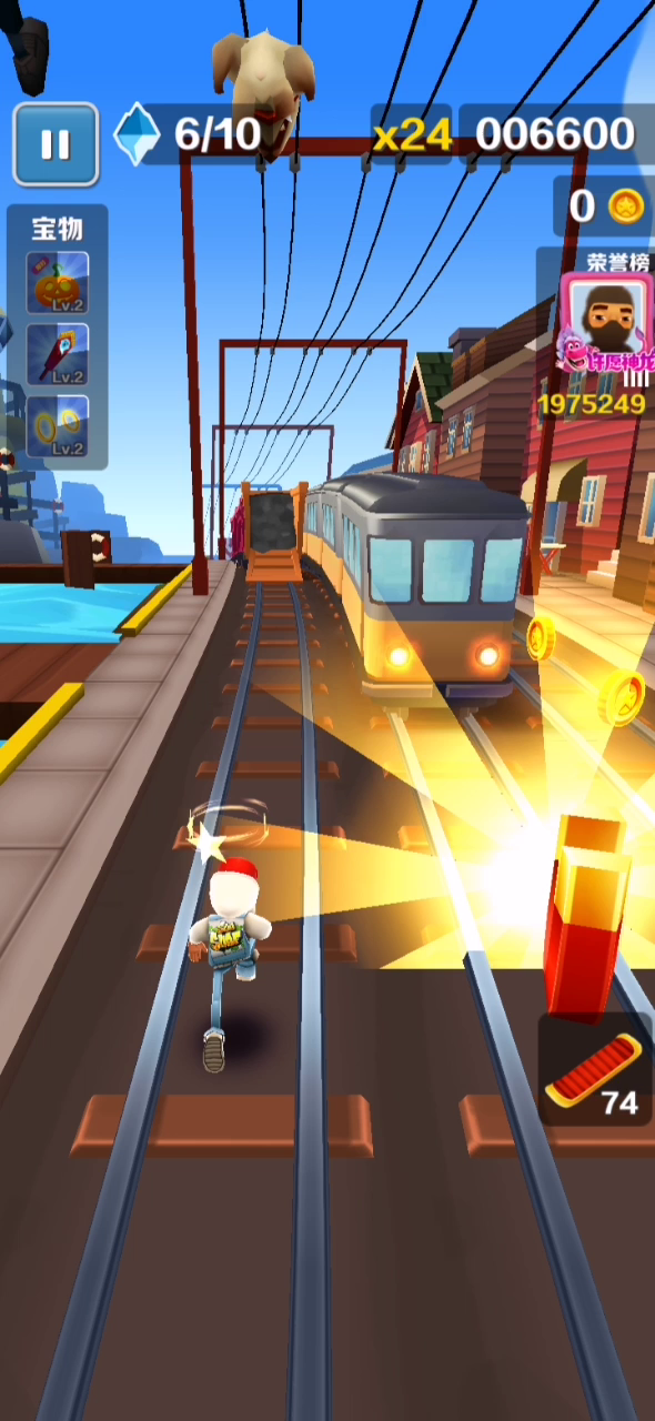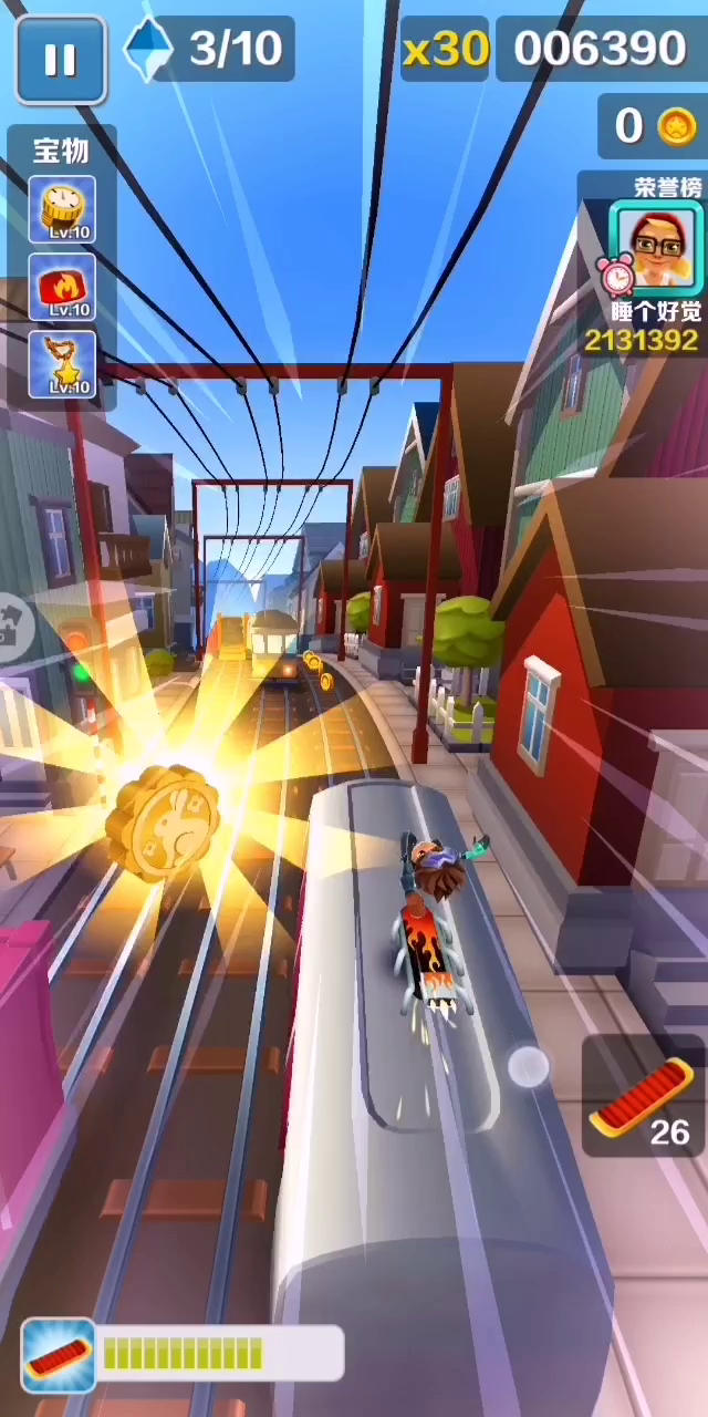 哈哈哈哈哈哈哈哈哈,玩地铁跑酷这么久,头一次遇到这种,穿着跑鞋空中跑,我感觉应该是在吃到喷射器飞起来的时候,顺便吃到了跑鞋才导致这样的😂