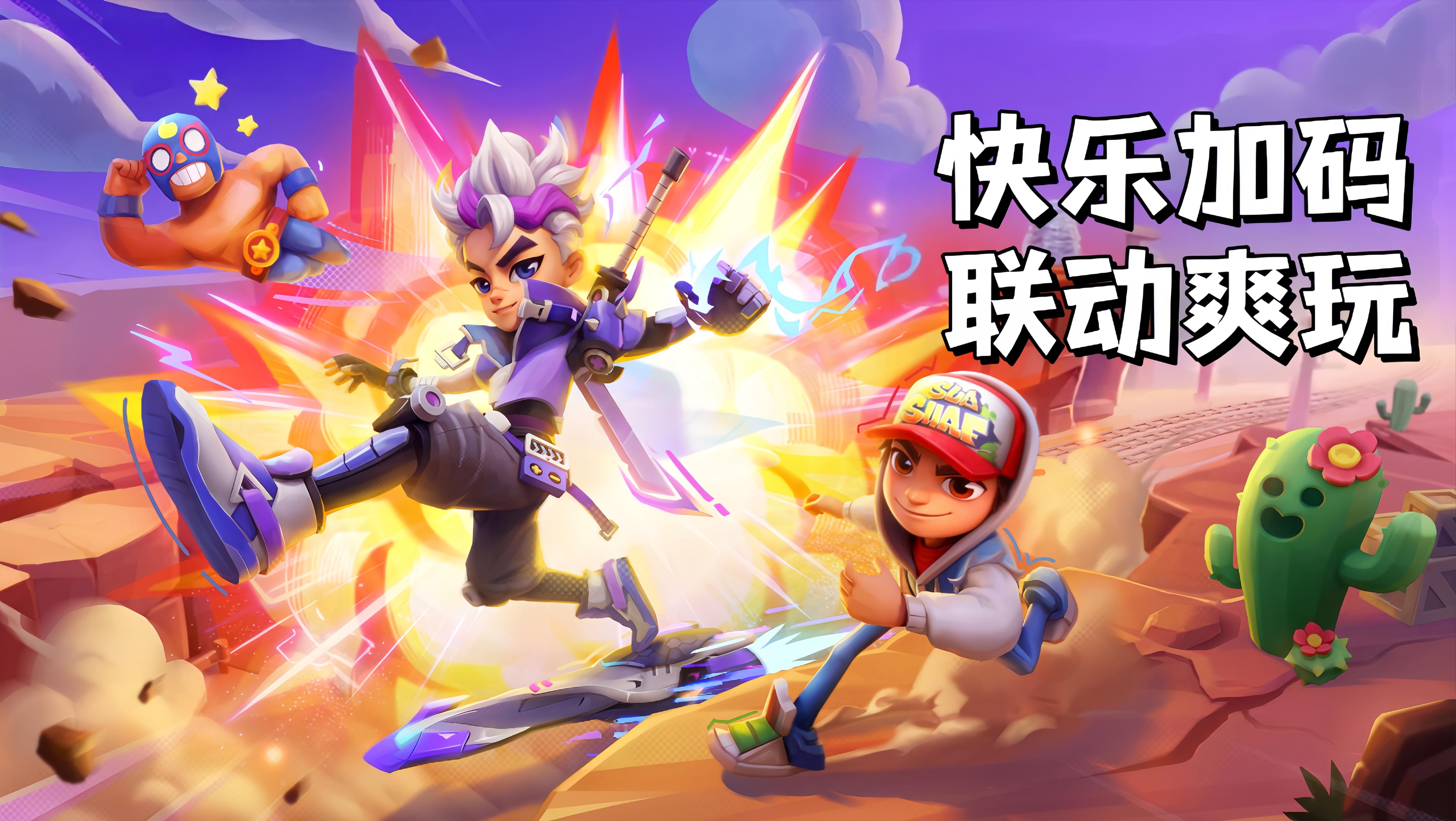地铁跑酷 x 荒野乱斗联动重磅开启! 荒野峡谷全新版本现已上线, 版本活动、限时玩法与多重福利同步登场, 更有全新电玩主题角色与联动角色惊喜加入, 一起踏入这场速度与对战交织的荒野冒险吧!