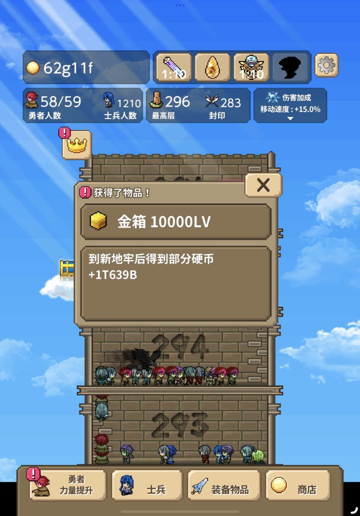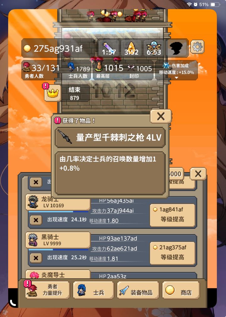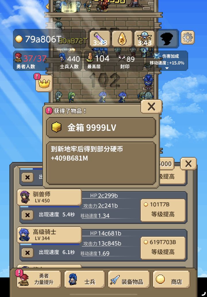 勇者499999级☞500000级需要6bs金币最后一个士兵也达到50000级了