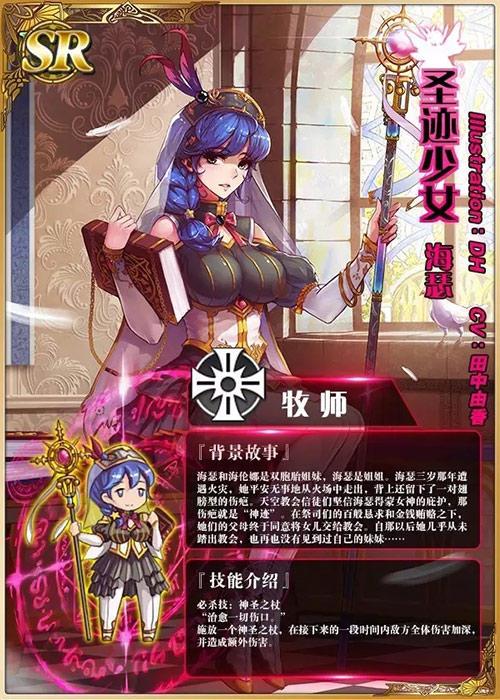 亲爱的观众老爷们大家好,今天为大家带来的是《螺旋境界线》中圣迹少女·海瑟的背景故事和技能介绍~啾海瑟和海伦娜是双胞胎姐妹,海瑟是姐姐。海瑟三岁那年遭遇火灾,她平安无事的从火场中走出,背上还留下一对翅膀形的伤疤。天空教会的信徒们坚信海瑟得蒙女神的庇护,那伤疤就是“神迹”。在祭司们的百般恳求和金钱贿赂之下,她们的父母同意将女儿交给教会。自那以后她几乎从未踏出过教会,也再也没有见到过自己的妹妹……海