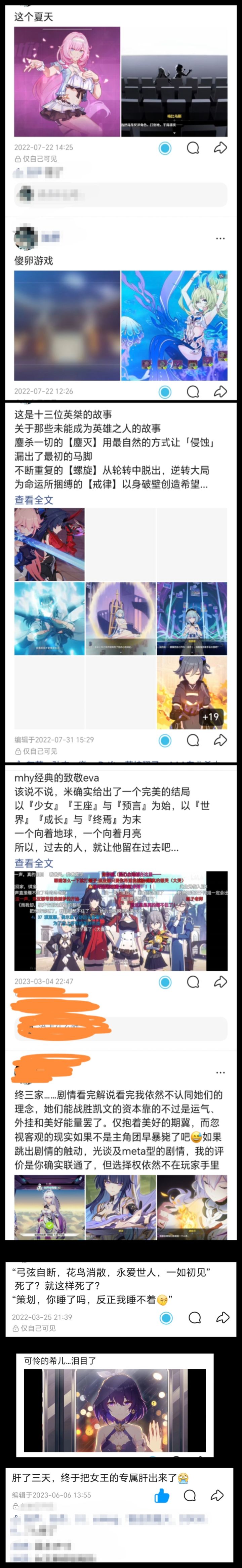 ひめ坂あい : 第二部真的做的够使一坨,我现在连玩下去的动力都没有。想当年薪炎永燃,每次看我都绷不住想哭,每次上线都能盯着kiana看老半天想着这孩子咋这么可怜,以前有多爱bbb现在就有多讨厌现在的第二部