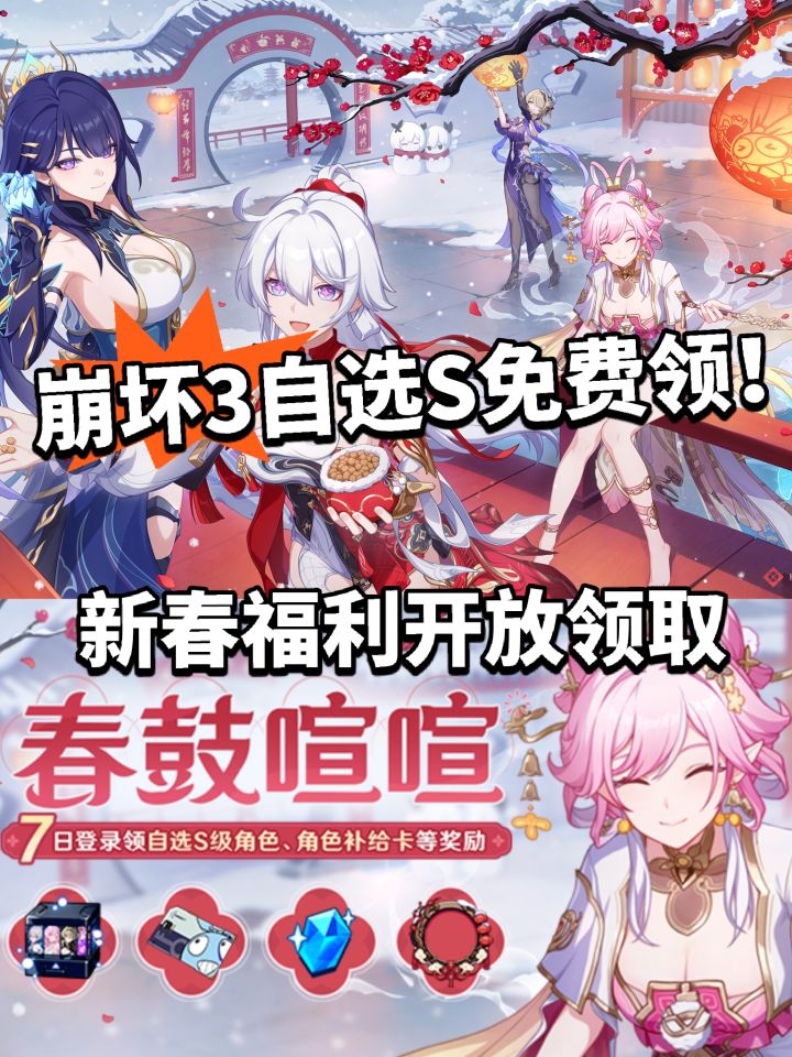 大的来了家人们!崩坏3春节福利直接拉满,免费送自选S级女武神,消息一公布,瞬间冲上热搜从今天2月16日04:00到4月2日04:00,等级达到15级就能参与,全程只需要登录7天,不用做任务、不用氪金,奖励轻松拿。 第一天领288水晶,第二天拿吉络云华绶带,第三到第六天一共送5张角色补给卡,第七天直接送新年自选S级女武神宝箱·2026,可以在真理之律者、真我·人之律者、螺旋·愚戏之匣里随便选一