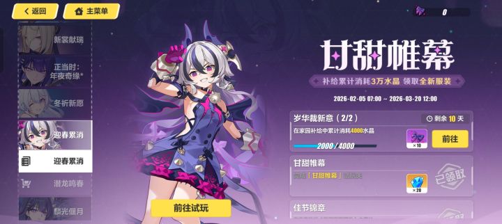 《崩坏3》全新8.7版本「时岁叩晓」现已推出!S级角色雷电芽衣「镇×偃月叩晓」登场!累计登录共可领取补给卡×20、S级角色自选箱等丰富奖励!送新春祝福,有机会获得水晶、周边好礼哦!2026年2月5日12:00~2026年2月23日 23:59活动期间,在本帖下回复舰长们想为琪亚娜、芽衣等人及崩坏3送上的新春祝福,并附上游戏uid,即视作参与成功。★爱莉希雅小不点律者手办(1份)★在所有符