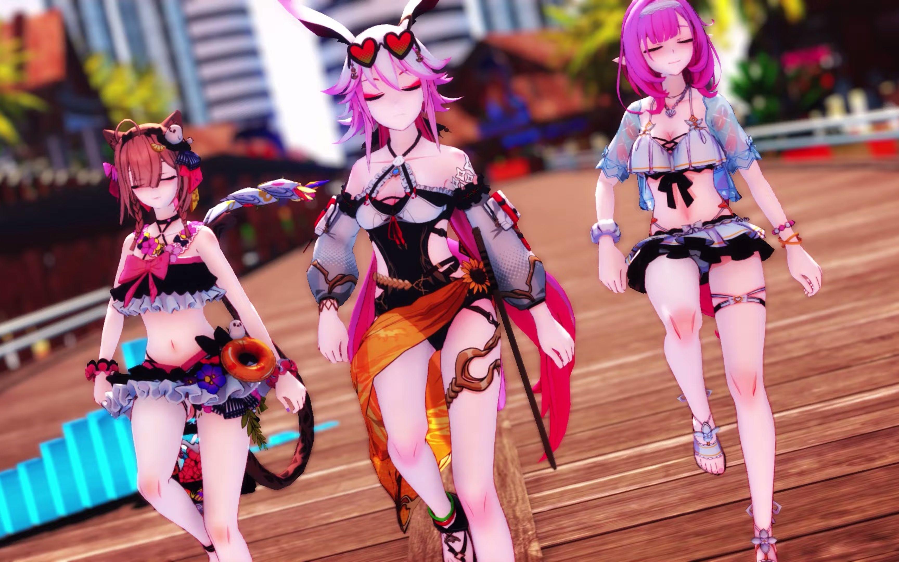 【崩坏MMD】Wiggle Wiggle【八重樱&爱莉希雅&帕朵菲莉丝】【搬运】