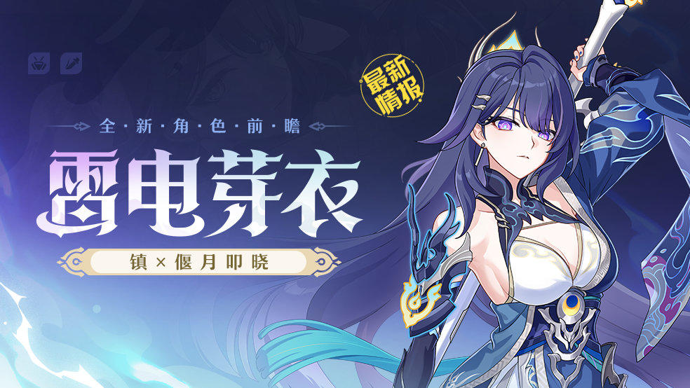 “一切始于女孩纯稚的想象:温柔强大的守护神踏夜色而来,熠熠刀光斩尽漆黑长夜的孤独与恐惧,亦守护了女孩恬然的梦。而今,守护神应孩童的呼唤自传说步入现实,以长风为骑,偃月为刃,刀光飒沓,点亮年景交汇之际最后的长夜。纵时移世易,澄心依旧,锋刃愈坚。” 全新S级角色雷电芽衣「镇×偃月叩晓」即将于8.7版本与舰长相会,今天就请舰长跟随本视频,对这位新角色进行初步的探索吧! 配音演员:雷电芽衣——