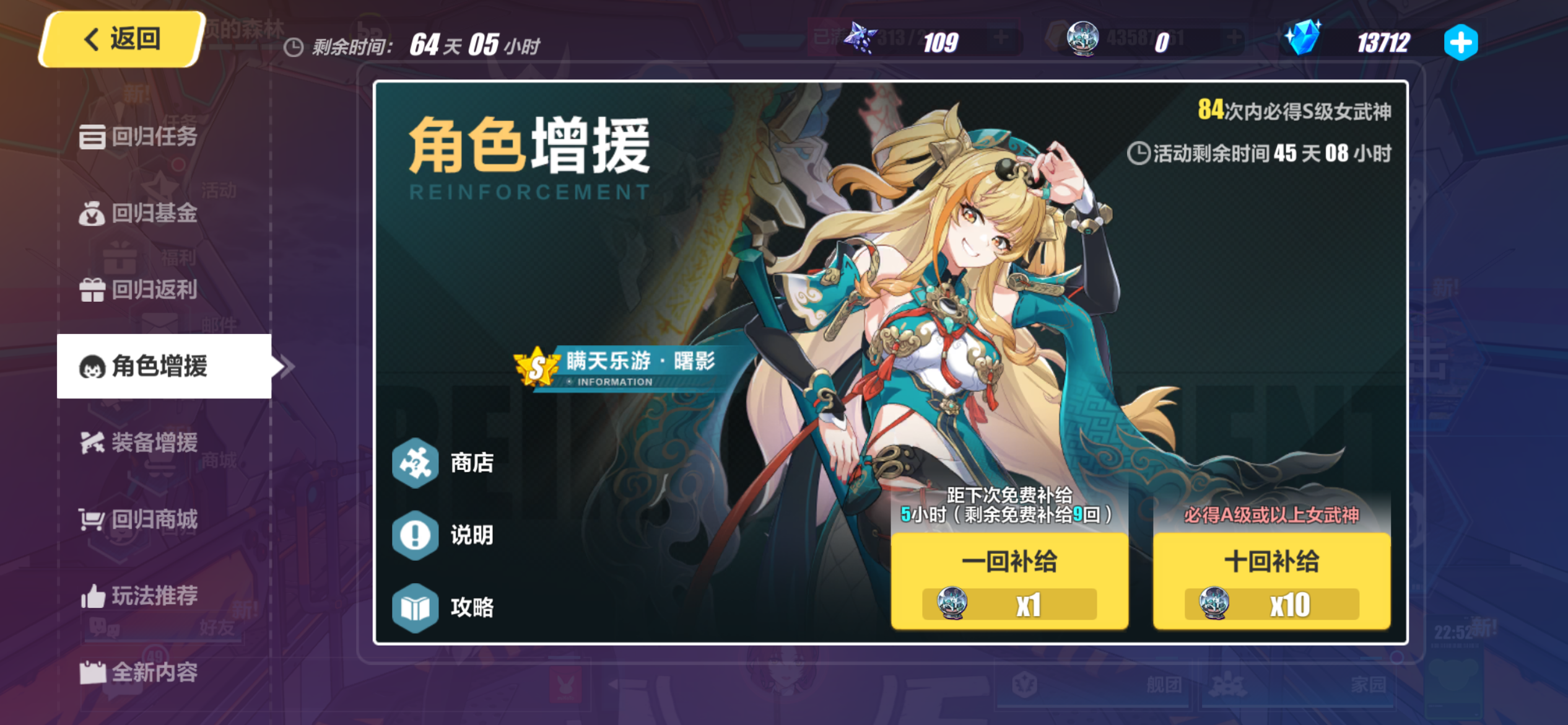 回归做完任务刚好9抽,想着单抽试试水,结果出了,今天上线才发现十连半价