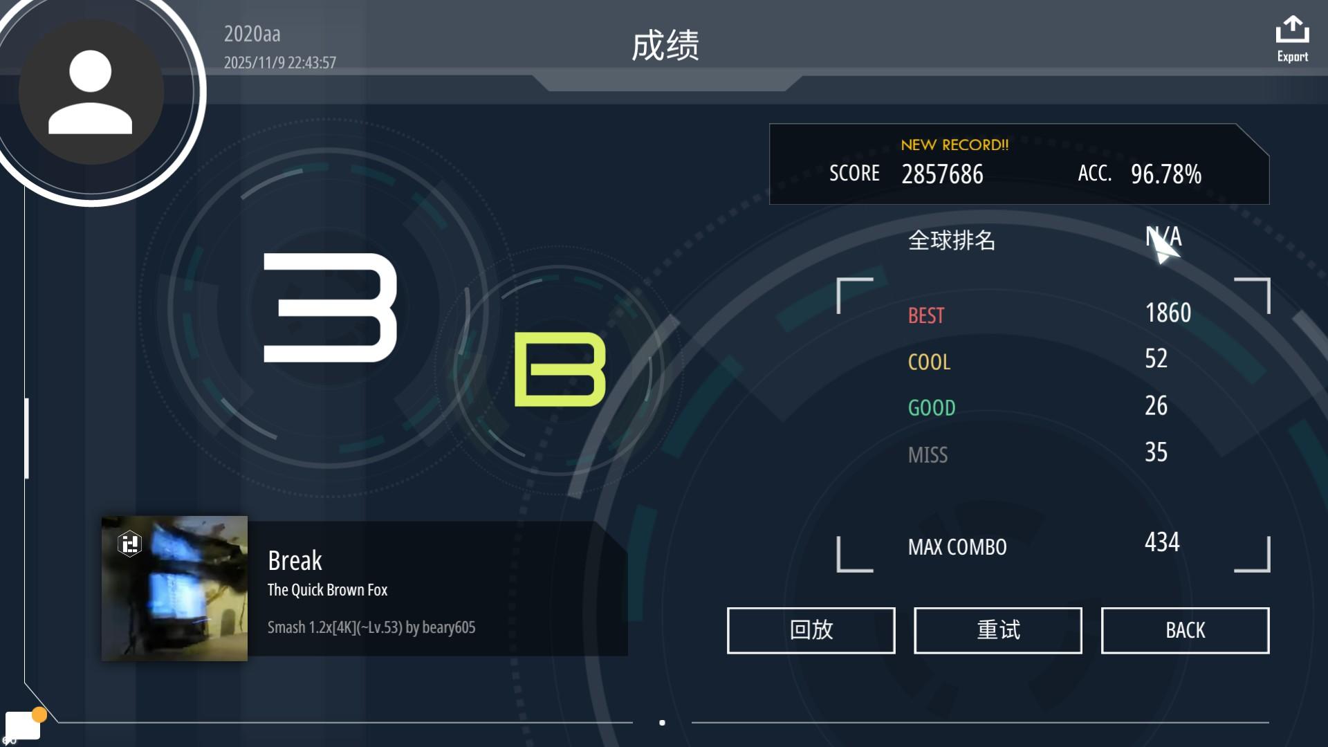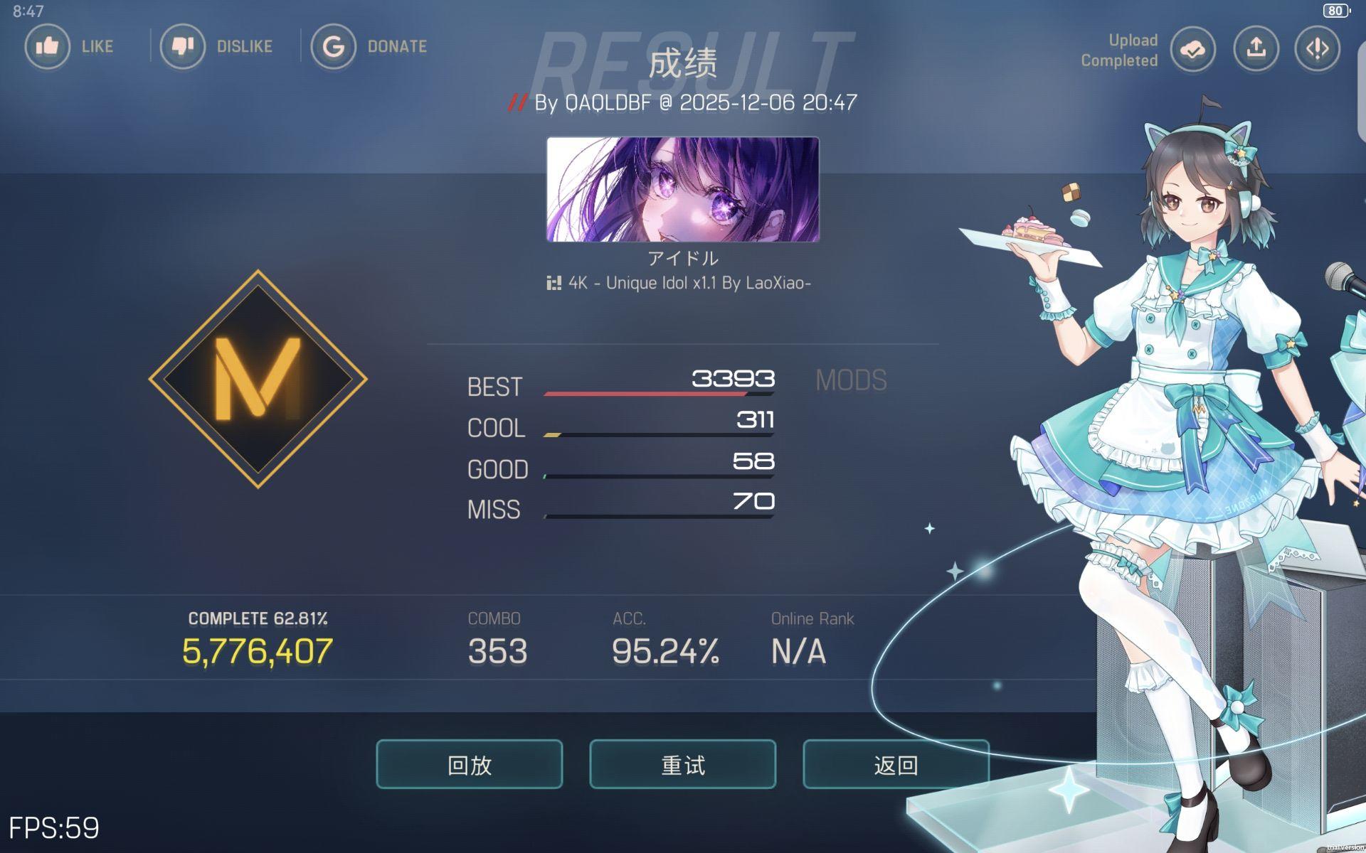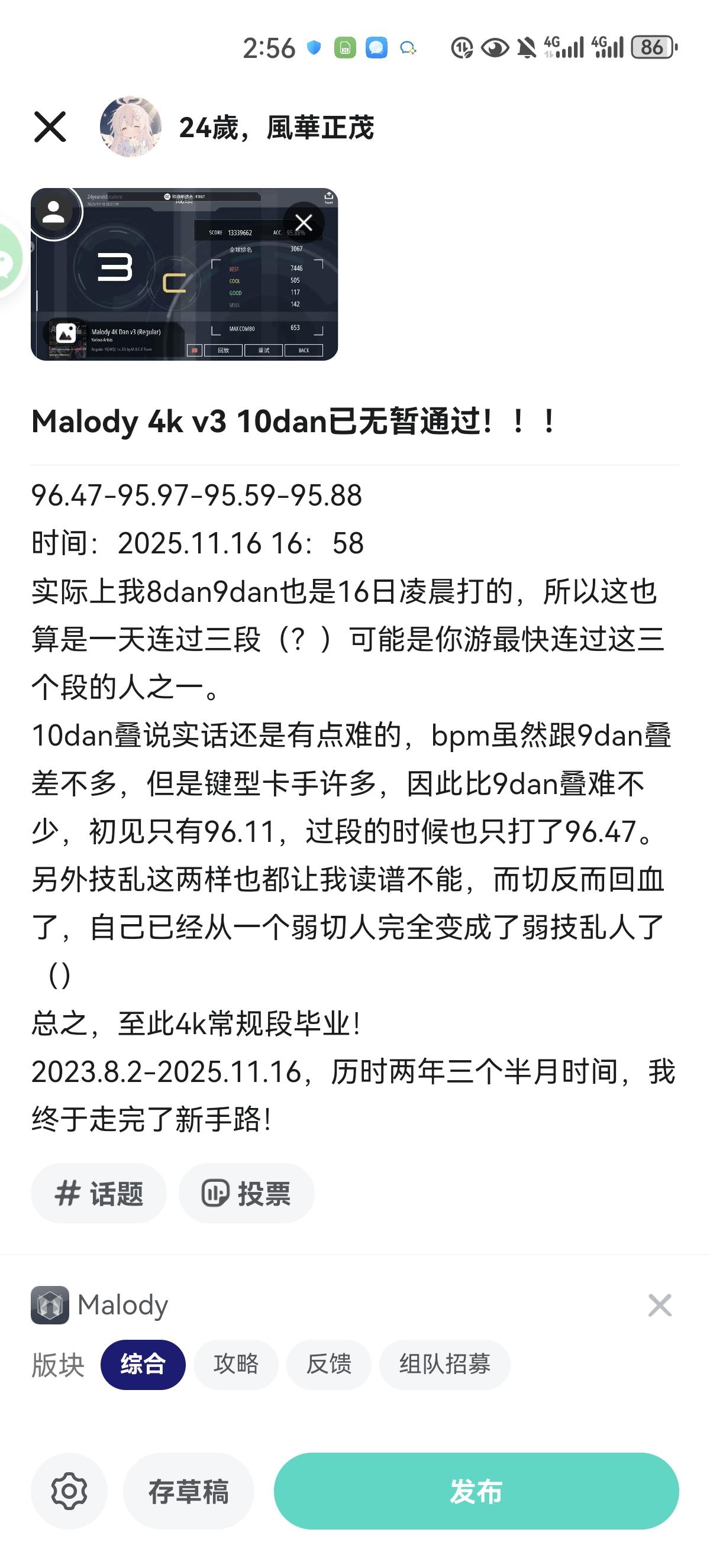 #malody 没想到34dan一块过了,少熬夜()