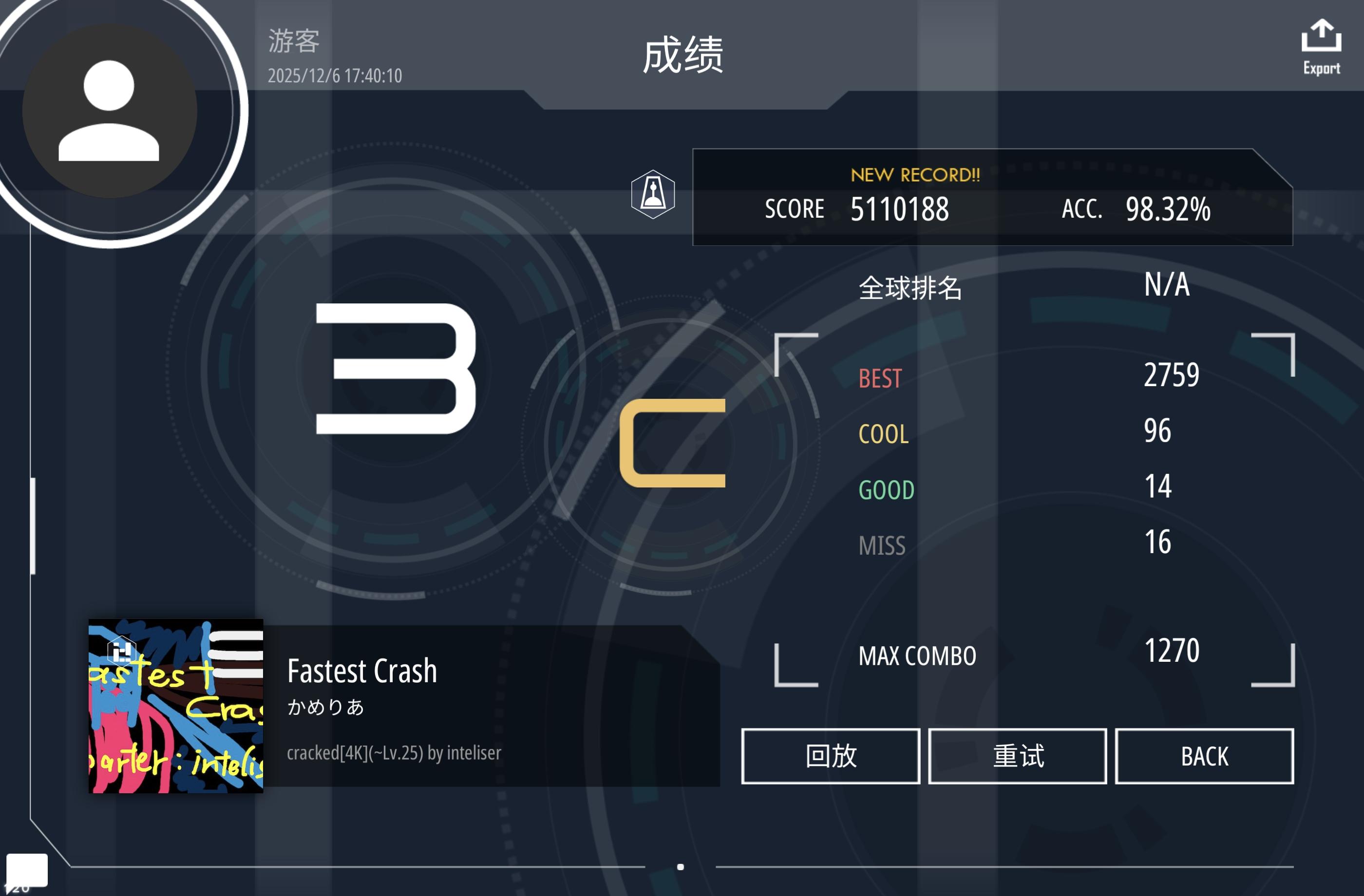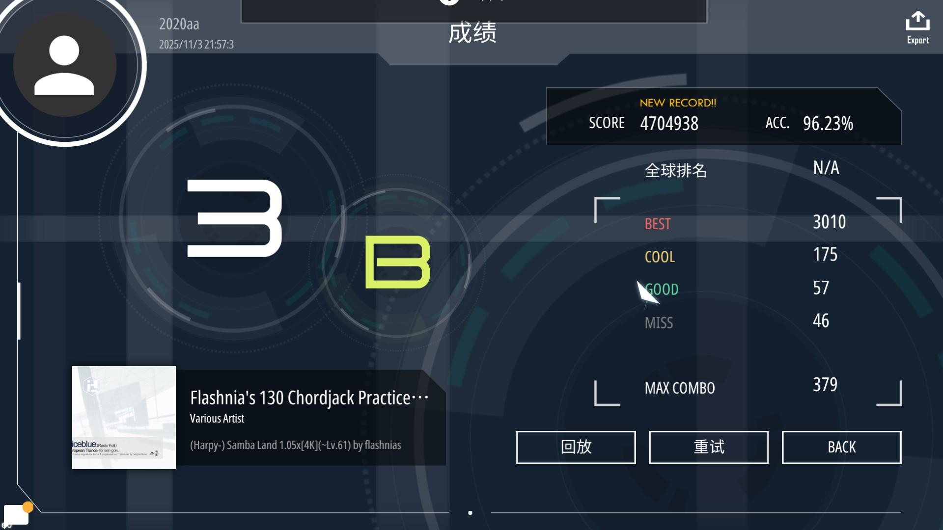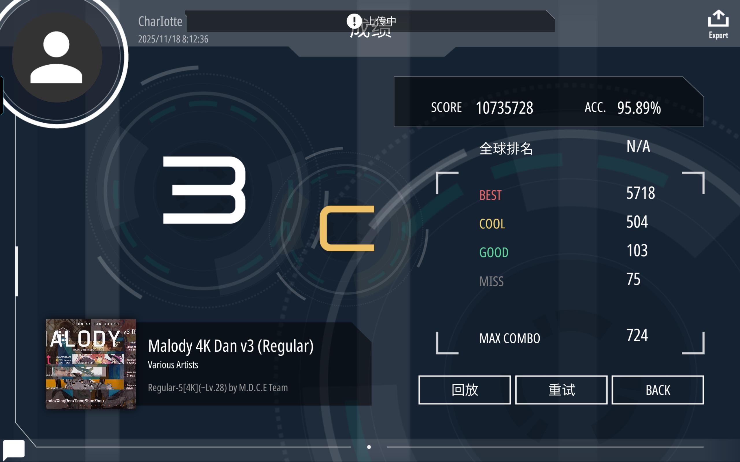 #malody 没想到34dan一块过了,少熬夜()
