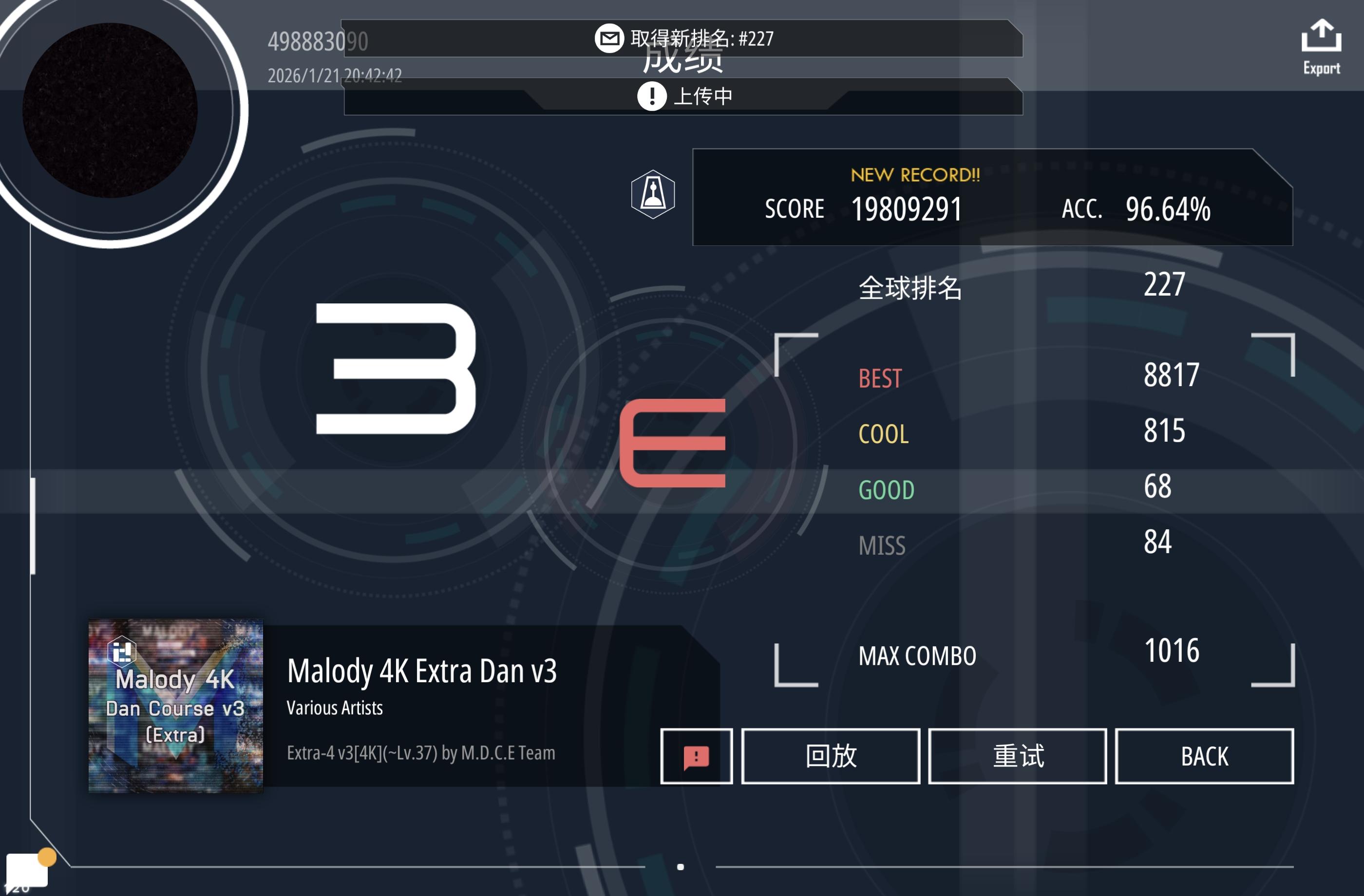 复健回来了,叠速已经没了,只会打大叠了,现在叠键v3段位不到ex3(卡叠速了)