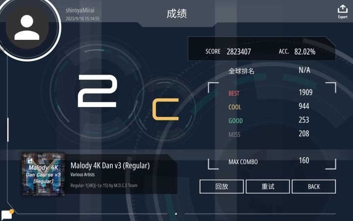 2dan打了一遍锁屏,突然第一首就会点了,准度竟然突破了9797.02-97.46-97.58-97.22然后趁热打铁打了3dan,除了最后一首因为连打的时间太长没扛住,剩下三首基本上保持在可控范围内96.42-96.46-96.48-95.67#malody