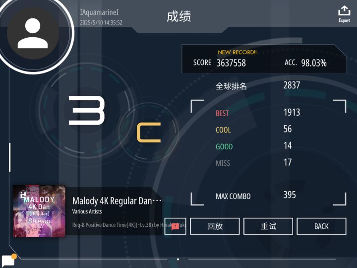 切速慢慢上来了[表情_斜眼笑][表情_斜眼笑][表情_斜眼笑] 最后尾杀超级16分对拍(bushi)32分楼梯狂掉acc[表情_嫌弃] 等7dan切到92就差不多能三带一过7dan了[表情_可爱]