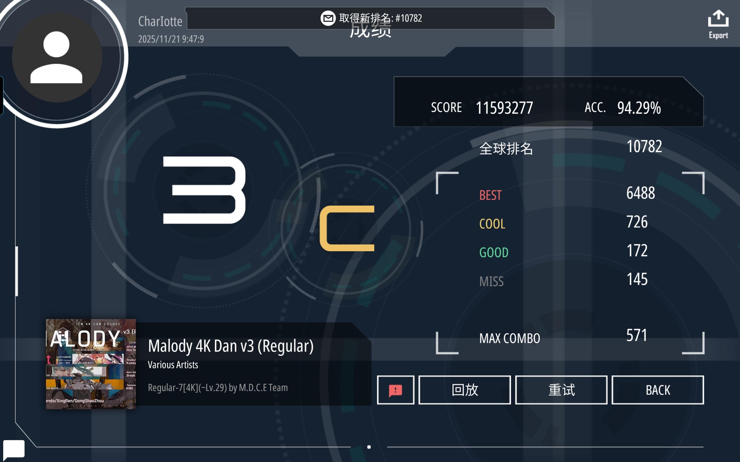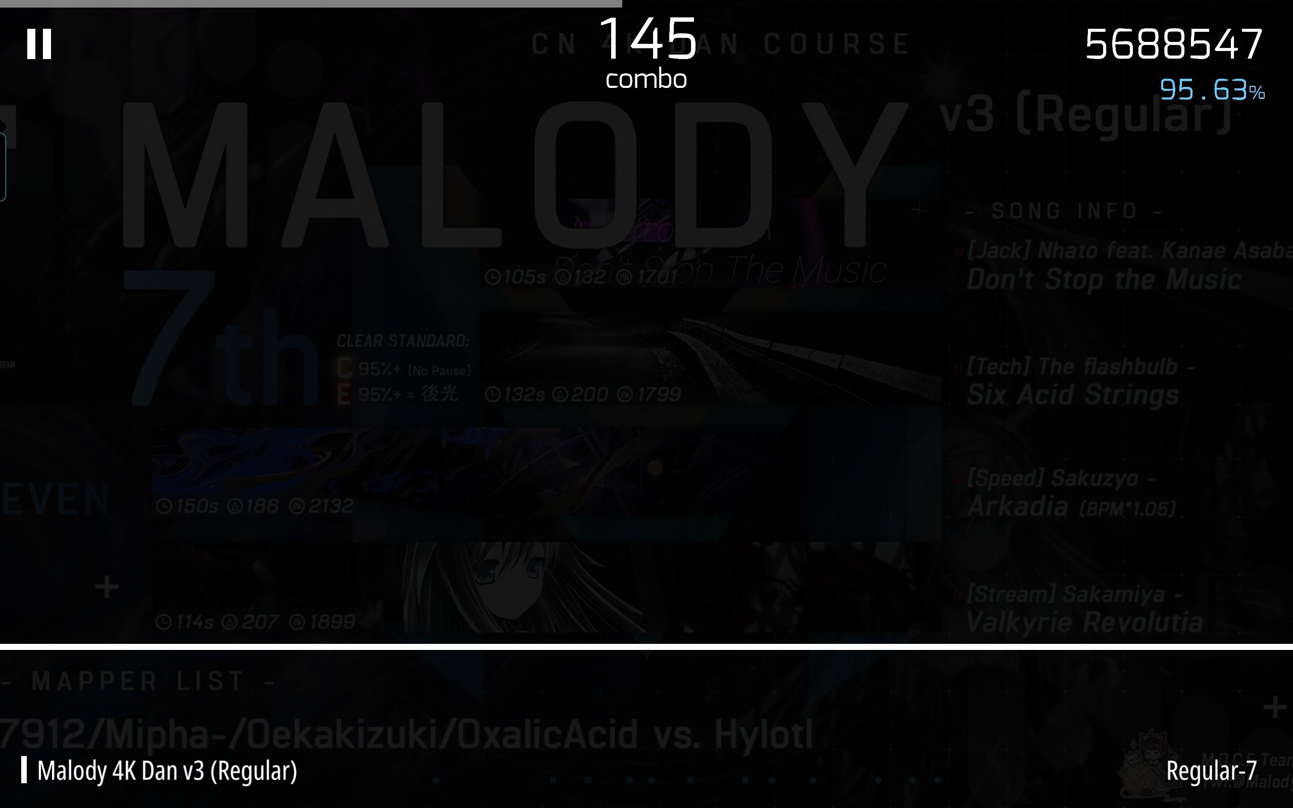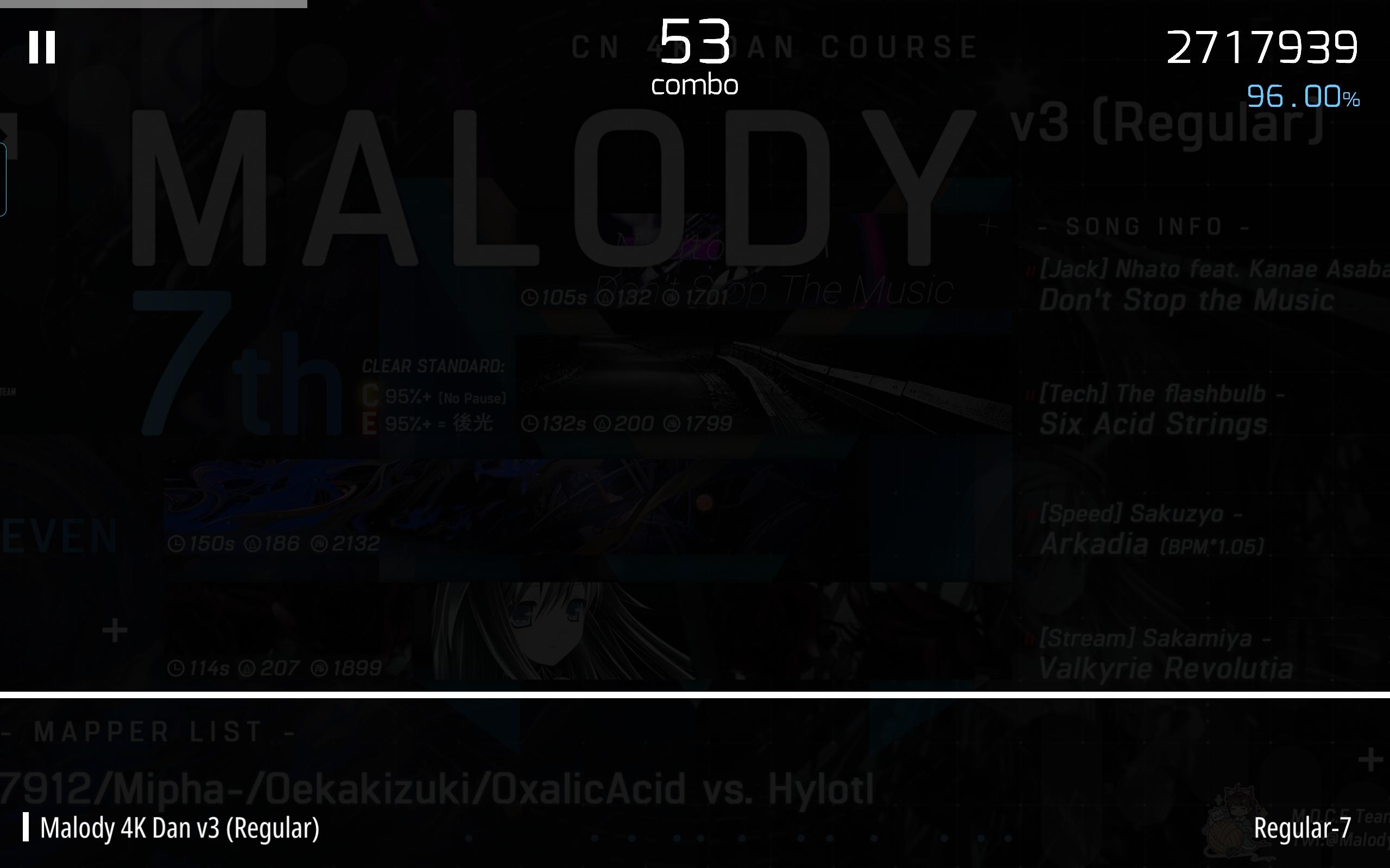 【纪念4k常规段毕业】Malody 4k v3 10dan已无暂通过!!!