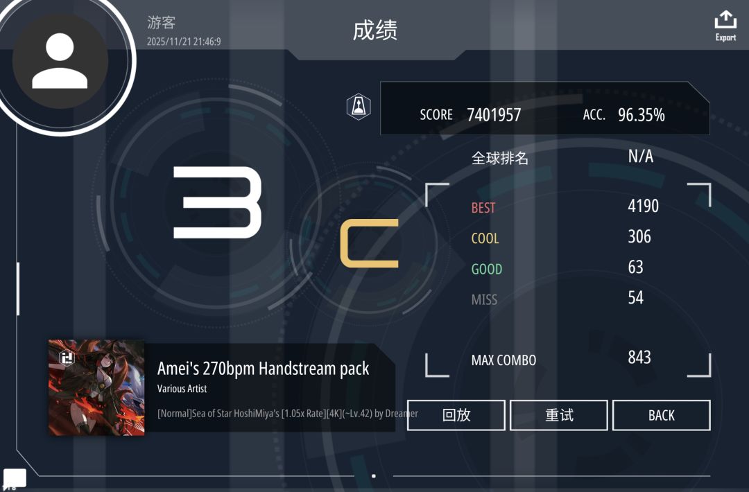 bpm=278,三押切手直接卡住切不过去,太快了