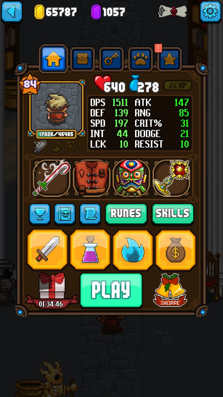 转生了一次,随便升到了72级。讲讲套路,转生前后runes是不变的,还有下面的五角星下的武器也是不会变的。所以这两样你有好的装备的话会有些优势。runes推荐装备加血量和魔法值。紫装明显比白装强上不少,不知道有没有橙装,暂时没见到过。这里第一个是提高最大魔法值+95,第二个是提高血量+250。差不多是这样,具体值记不清了。先说模式,获得金钱最快的是故事模式(story mode),就是pla