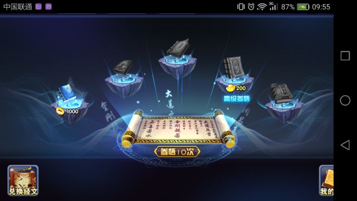 id 二郎真菌俺的嫁 本篇论没赶上第一天后来的小白比如俺没元宝,没有欧洲人的脸抽到橙将怎么靠刷经文打竞技场。 如图,这是经文界面,首先先去把月卡和微信qq礼包都拿到手,这样可以保证了元宝换金钱与初始赠送的金钱,刷经文一共靠两个字,钱和脸,经文系统是有阶段的,初级经文1000点了后有几率开启后面的经文,以此类推越往后越好,高级的可以开紫经文,而关键就是紫经文。 刷出紫经文后五个人每个人佩戴相