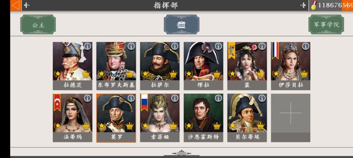 花了两年的时间 ,终于把这些升满了 , 炮兵感觉最强就是拿破仑 ,骑兵的话就是缪拉,步兵推荐马塞纳