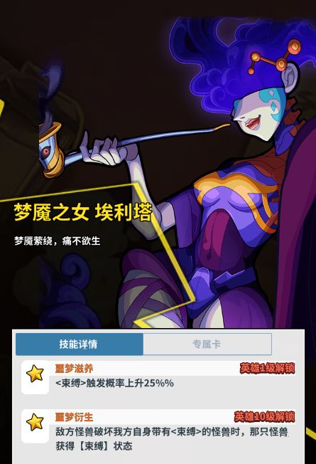 【通行证换季】 新一季的通行证将在2021年的11月与大家见面,同时我们也将推出一位新英雄:梦魇之女 埃利塔 英雄技能: 噩梦滋养——<束缚>触发概率上升25% 噩梦衍生——敌方怪兽破坏我方自身带有<束缚>的怪兽时,那只怪兽获得【束缚】状态 噩梦折磨——我方回合开始时:我方所有<束缚>怪兽获得<折磨>+1。 梦魇之女埃利塔 除此之外,这次通行证的金色皮肤将会赠送诅咒娃娃 安娜贝尔的新皮肤:安娜贝尔