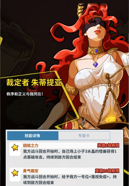 【通行证换季】 新一季的通行证将在2021年的7月与大家见面,同时我们也将推出一位新英雄:裁定者 朱蒂提亚 英雄技能: 团结之力——我方战斗回合开始时,自己场上小于3水晶的怪兽原有的基础攻击值+1,持续到敌方回合结束; 勇气裁定——我方战斗回合开始时,给予我方一号位<蔑视免疫>,持续到敌方回合结束; 秩序重构——当对手把怪兽卡加入自己卡组时,那张卡不加入对方卡组,加入我方卡组,该技能无法对一张卡连