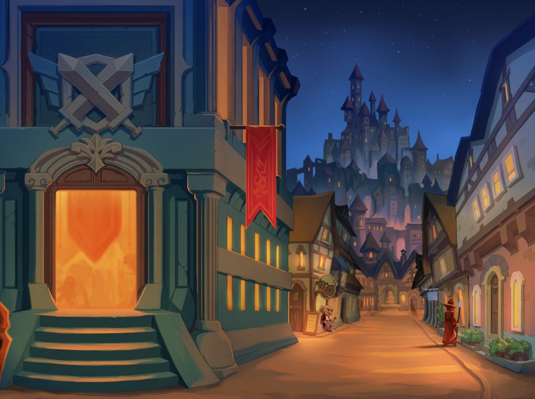 刚才策划同学找到我,要求宣传一下他们做的新功能——铁匠放映室。 “你可以想象一下,你在竞技场上战斗将会受到无数观众的瞩目。” “什么!?我们不是在小破酒馆里打牌吗?” 就在刚才我终于明白了,竞技场什么的,原来不是老板娘喝多了吹牛逼的产物啊…… 但这设定说变就变,还真有点不适应。 趁这个机会,我们再来捋一下王都内的地理环境全貌。 你看,穿过城门,往右是王都大街。 偶尔会有猫头鹰商人、地精绅士之类的神