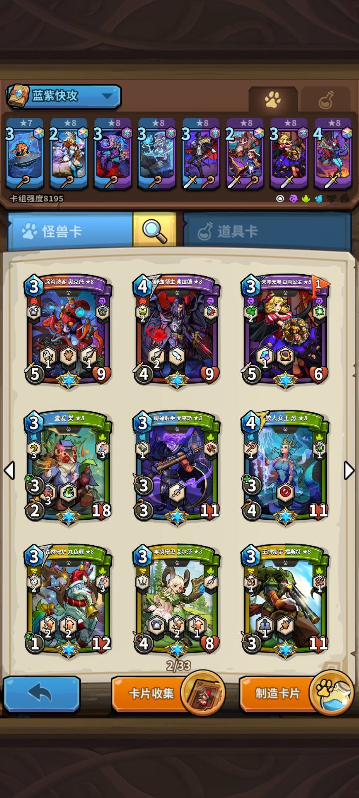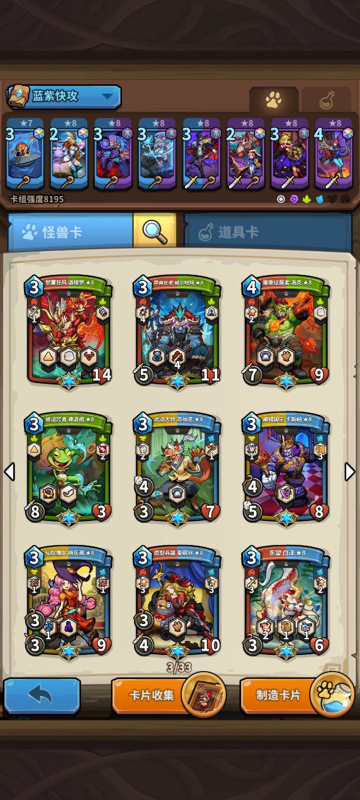 目前没有什么卡,2月底能到10个石头,换5张精英卡。还有2万多钻,应该能弄个国王加一个年兽。求大佬推荐个阵容