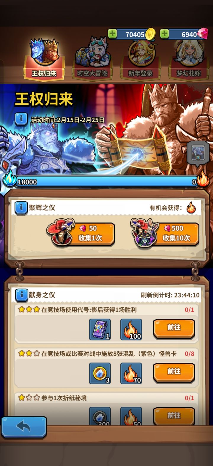 觉醒商店更新(2月16日)喷射乌贼觉醒:冲锋增加至12点,增加技能防空1诅咒女巫觉醒:费用降低1点情人节登录活动时间:2月14日至2月16日活动内容:限定时间内登录游戏至活动页面即可领取手捧花奖励。年兽大乱斗活动时间:2月16日至2月23日活动内容:限时秘境活动,完成任务可获得时空沙漏,新卡速递包等道具。魂力商店全场打折活动时间:2月15日至2月23日活动内容:全场3魂力的精