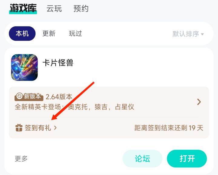 亲爱的牌友们,《卡片怪兽》2.67版本将于3月1日正式上线,TapTap官方社区的3月社区福利即将开启,赶快参与活动领取福利吧! 3月签到领福利签到活动时间:3月1日0:00 ~ 3月20日23:59参与方式:TapTap《卡片怪兽》签到活动页面签到地址:在《卡片怪兽》详情页左下角-活动(ios请点击详情页右上角详情选项-福利),点击进入“签到”活动。或者在游戏库中找到《卡片怪兽》,点击