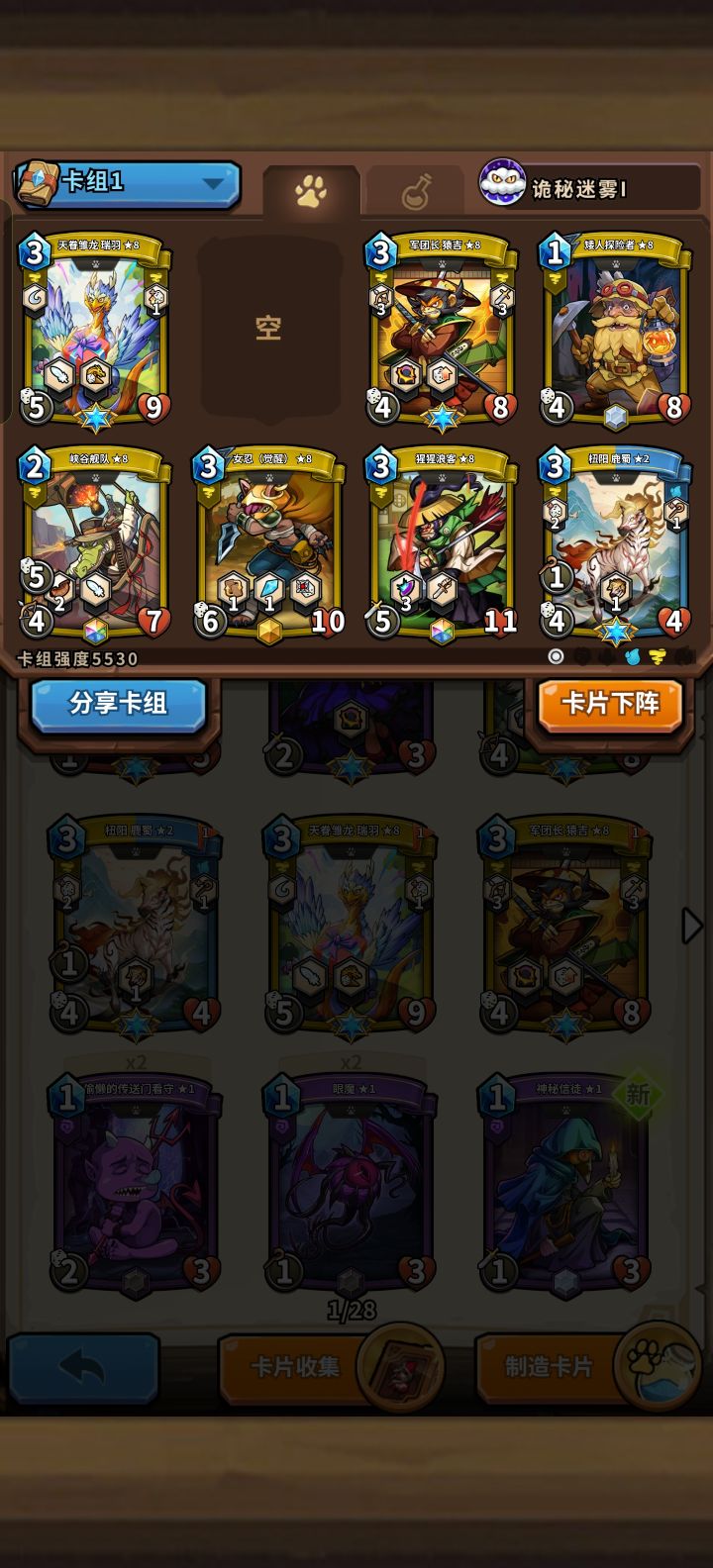目前没有什么卡,2月底能到10个石头,换5张精英卡。还有2万多钻,应该能弄个国王加一个年兽。求大佬推荐个阵容