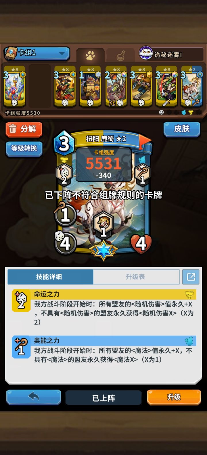 在我这卡牌他上不去啊,就这两张卡牌,他没办法一起上吗嘛,整套阵容就在最后,这两张好像是冲突了,为什么不能一起上?有点奇怪,刚换的,亏麻了