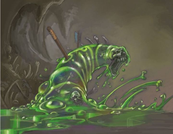 各位牌手大家好,聊多了那些强大的怪兽们,今天我们来聊聊杂兵:看似人畜无害的软泥怪和天生眼瞎的穴居人。说到软泥怪,大家第一反应也许是《勇者斗恶龙》里萌萌的史莱姆、《仙境传说》中蹦蹦跳跳的波利……妹子甚至都想上去抱一抱它们呢。如果你行走在日系或者韩系的奇幻世界中,你大可以和这些可爱的小家伙们亲热亲热。但是如果你正处于西方奇幻世界中的话,就请三思而后行了。在正统奇幻设定中,软泥怪通常带有强酸和高