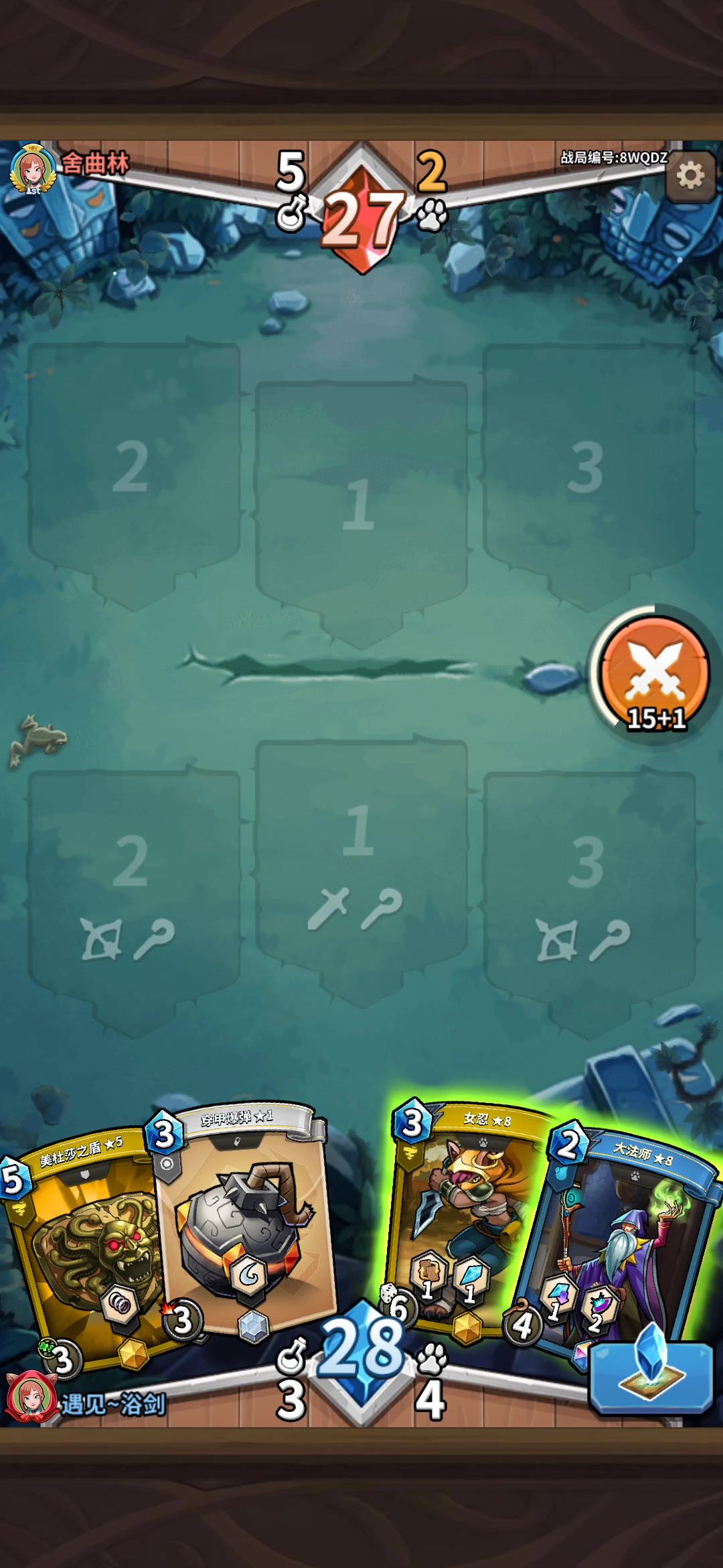 不知道是谁卡了,反正对面上了一张卡之后就没有了动静,其他的看视频