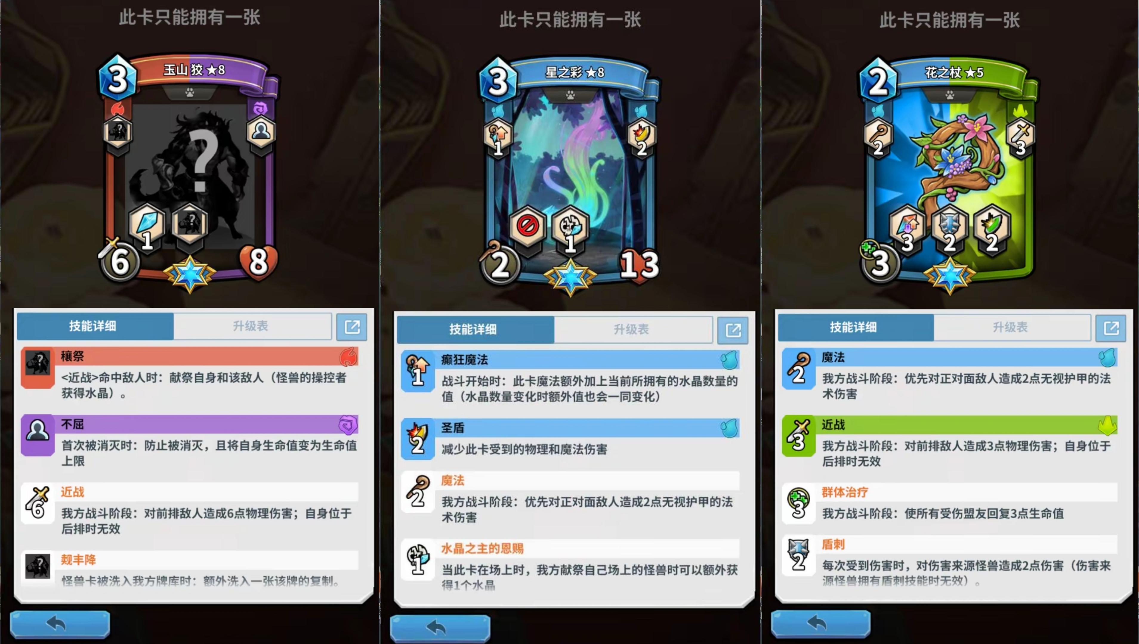 1.巧手猩:通用性:高。适合所有卡组,解决开局卡手问题,以及可以把想用的怪刷上来2.疗疗鱼:通用性:低。生长流专武,但是生长流本身就缺费用,很少有用的机会,只能锦上添花不能雪中送炭3.绿小芽:通用性:低。均衡流专武,解决了均衡高费开局上不了怪的问题,但是均衡本身也没有上场空间,只有数值没有机制很容易被针对4.假面蛇:通用性:中。能提高场上怪兽存活率,适合牌库厚度不高的卡组(不能增加怪