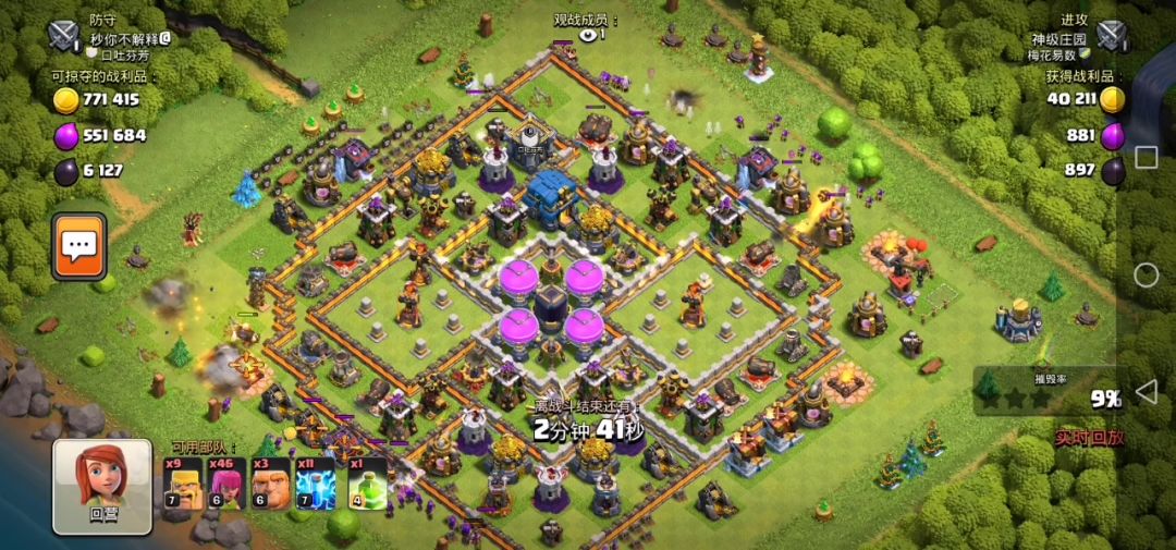 1.隐身法术 由于其不分敌我的隐身特效,这个法术并不适用于近战兵种,之前猜想的代替狂暴帮助雪怪爆本也就无法成立(因为会将大本一起隐身),它的适用对象将会是弓咏盾三王或者超级弓箭这一类的长手战士,同时也能降低女皇对狂暴的依赖性,甚至关键时候救女皇一命。(ps:小心对空连弩和箭塔找不到女皇拿天使出气!) 2021.1.9补充:现阶段隐身法术普遍用于飞艇+狂暴超法,在面对密集防御的部分阵型时战略上限大大