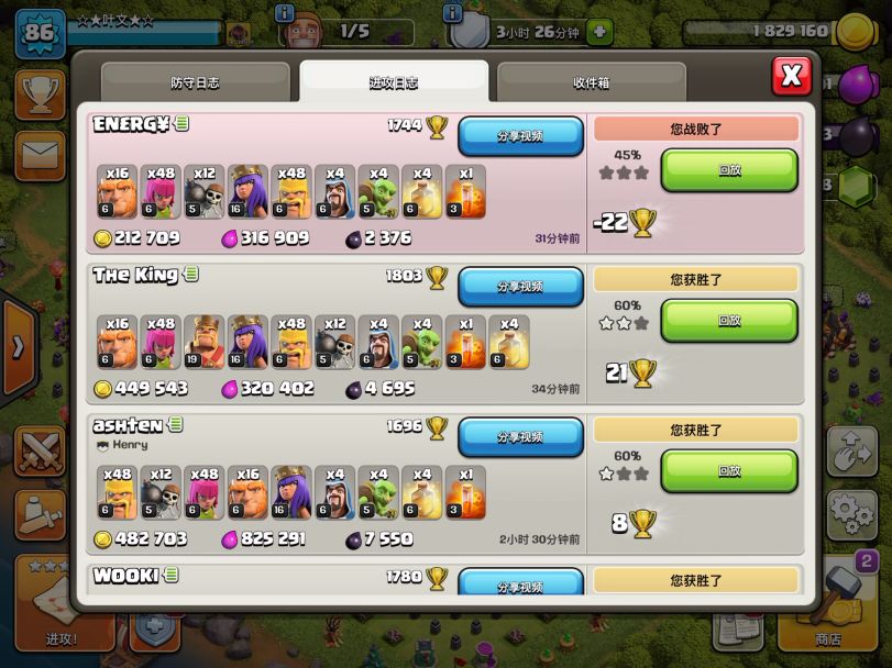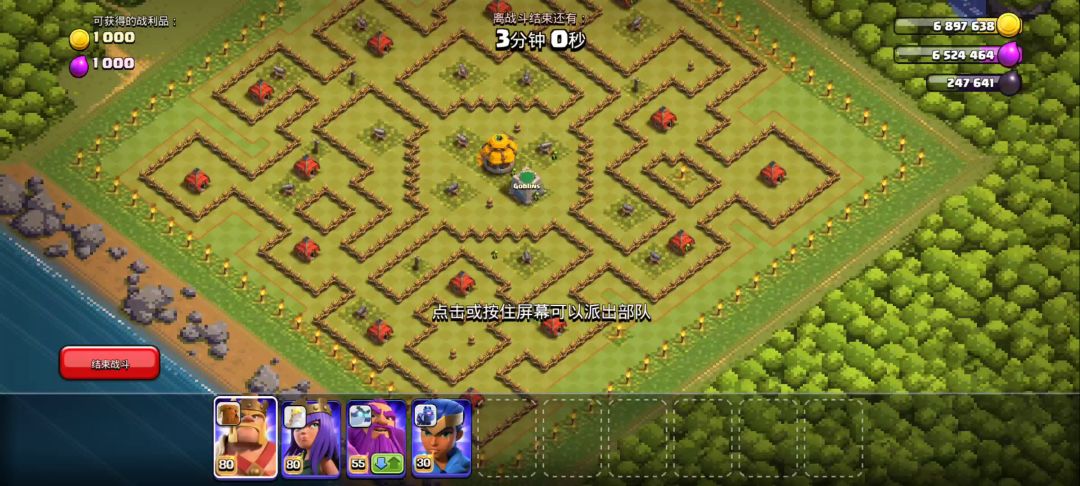 这次活动并不算太难,主要是误导性很强。 我的打法是分三个方向进攻,9点钟方向下三王和大部队,2点方向一个武神,6点战神和一个武神打,记得先放几个小兵吃陷阱。 9点开墙后双王开大就完事,隐身保女王单吃大本,最后战神开大和一个武神收尾,简简单单。