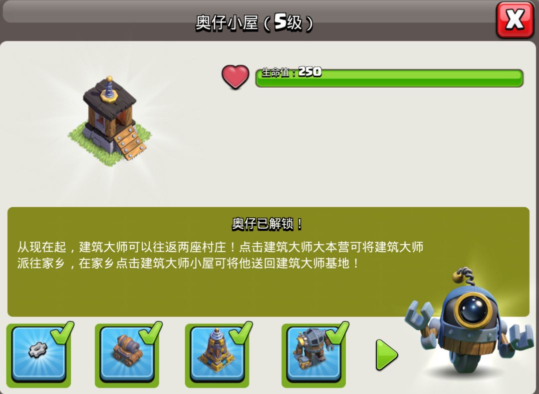 如果觉得对您有帮助,希望得到您的点赞关注,这是对我的文章的最大认可,谢谢。 定期更新是没有的,但是有好玩的游戏一定会分享给你们的呀。 本文以升满宝石矿井和奥仔小屋为终极目标。 夜世界与主世界的联系: 1. 工人 建筑名称:奥仔小屋(满级5级) 功能:可以在家乡工作,也可以在夜世界工作 升级条件: 1级:夜世界9级大本营。 2级:在家乡改装3座建筑。 建筑1:加农炮(7级可改装) 建筑2:箭塔(10