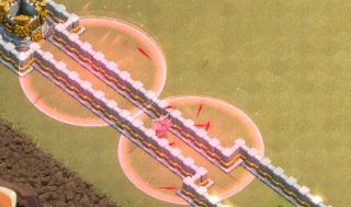 在11本部落战中,回字阵型已经流行很久了,基本会打的首领可以随便推平,而不会打的只能勉强拿个1星了,这是为什么呢?主要因为回字阵型属于引导性质阵型,一旦部队从外围进到内圈,部队将变得不可控起来。也就是说你不知道你的部队会往哪个方向走,所以回字阵型以前的打法基本都采用狗球流或者天女狗球流,但之前的更新中有了蝙蝠法术,这就让回字阵型有了更简单的打法,今天就为各位首领具体解析一下! 阵型分析 从上面的阵