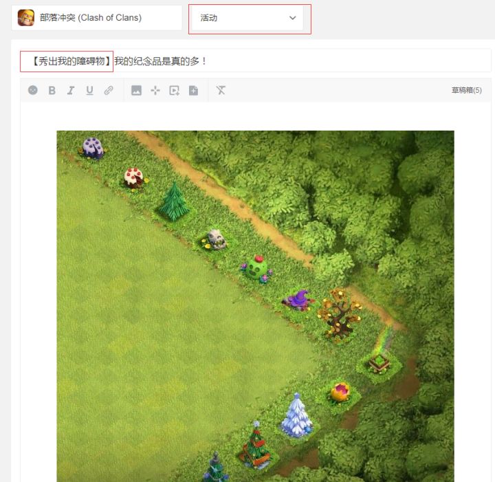 你是否偶然在小屋旁捡到了女巫遗失在这里的帽子;或者是突然有一天看到树丛中莫名其妙的钻出一株仙人掌;也试图与小伙伴比较谁家的圣诞树种类最多;又或者是与部落成员一起品尝周年蛋糕。时光短暂、记忆长留,每当看到这些琳琅满目的纪念障碍物,就像是回到了多年前,记起了那个懵懂年少的自己陪伴部落冲突的日子……活动时间:2019年8月25日-2019年9月1日活动规则:1、在“部落冲突CN”发布帖子,帖子以
