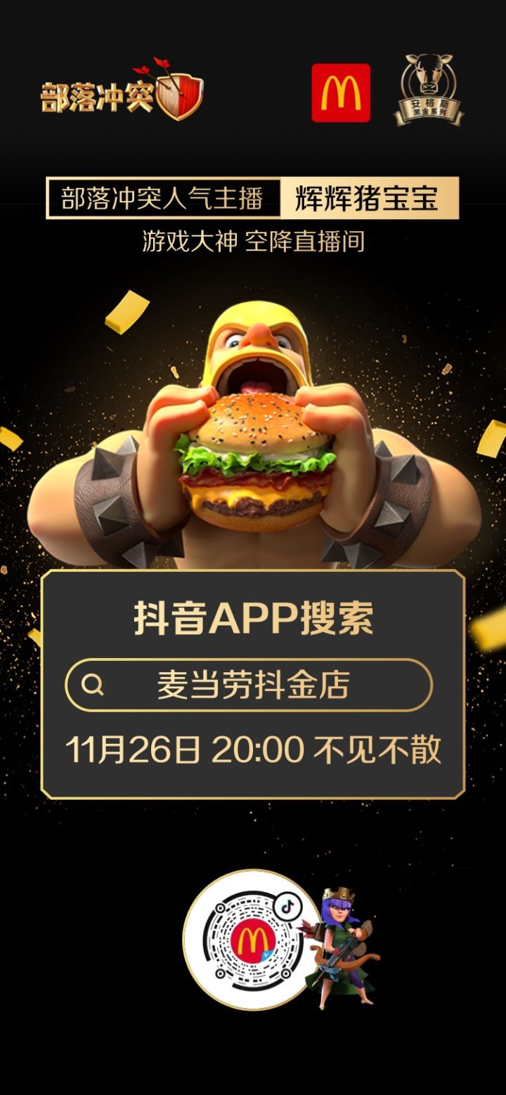 今晚20:00,部落冲突人气主播辉辉猪宝宝空降麦当劳抖金店直播间!直播间还有惊喜福利,各种部落冲突周边等着你!抖音APP搜索“麦当劳抖金店”,今晚我们不见不散~#战力爆表美味MAX#