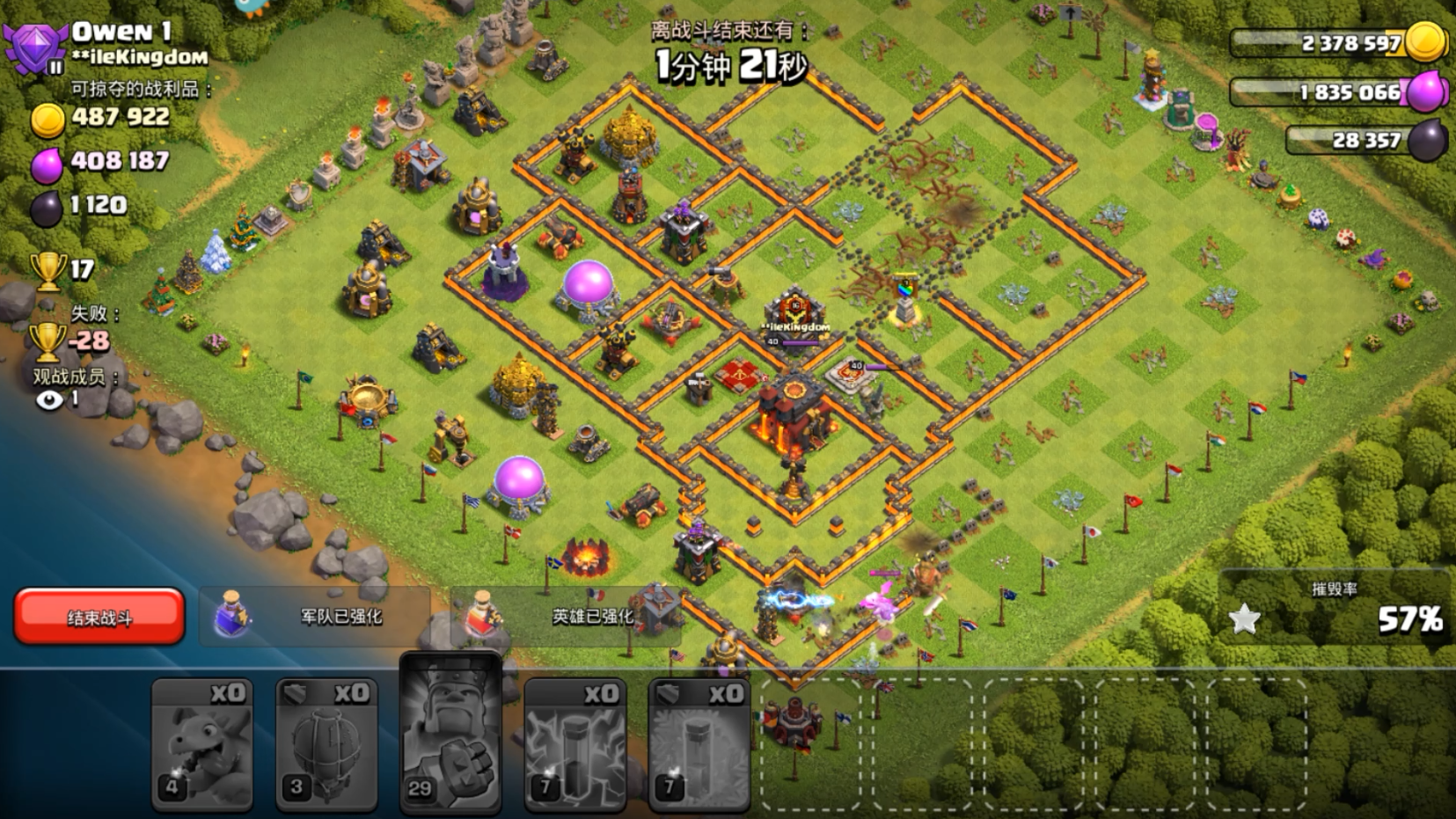 部落冲突:才打了一半拿到一颗星的资源也还不错,谁叫对手防御好