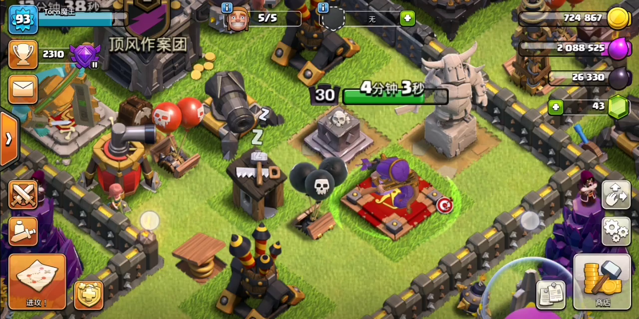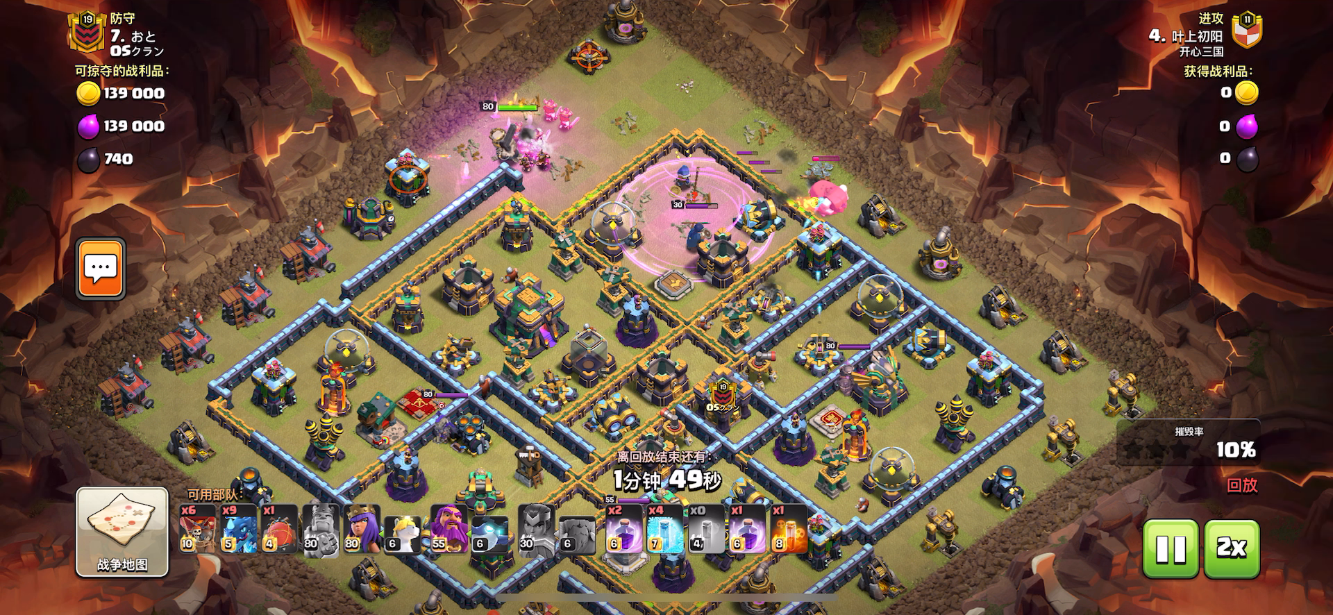 思路是,蛮王闰土清一边(看情况,也可以蛮王清边闰土跟大部队。)一条电龙清另一边。然后就是电龙一字划,我是先划电龙后下气球的。否则气球跑太快,白白浪费掉了。然后狂暴冰冻扔对。看准时机永王大招保护汽艇保证能爆本。女王配合残兵收尾就可以了。