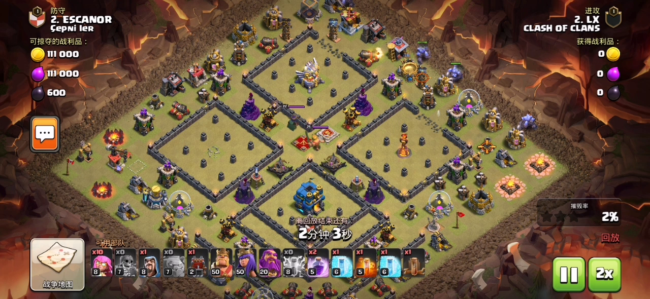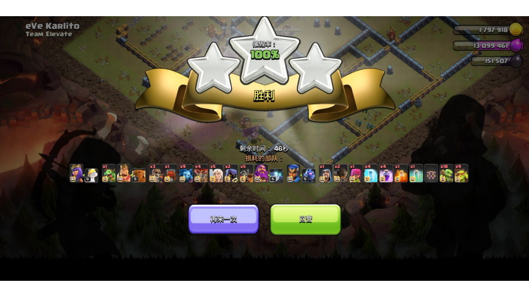 这次部落战打速12,有些失误,法术没计算好,1星99%还行,相对于超蛮能打的框架更多一些。