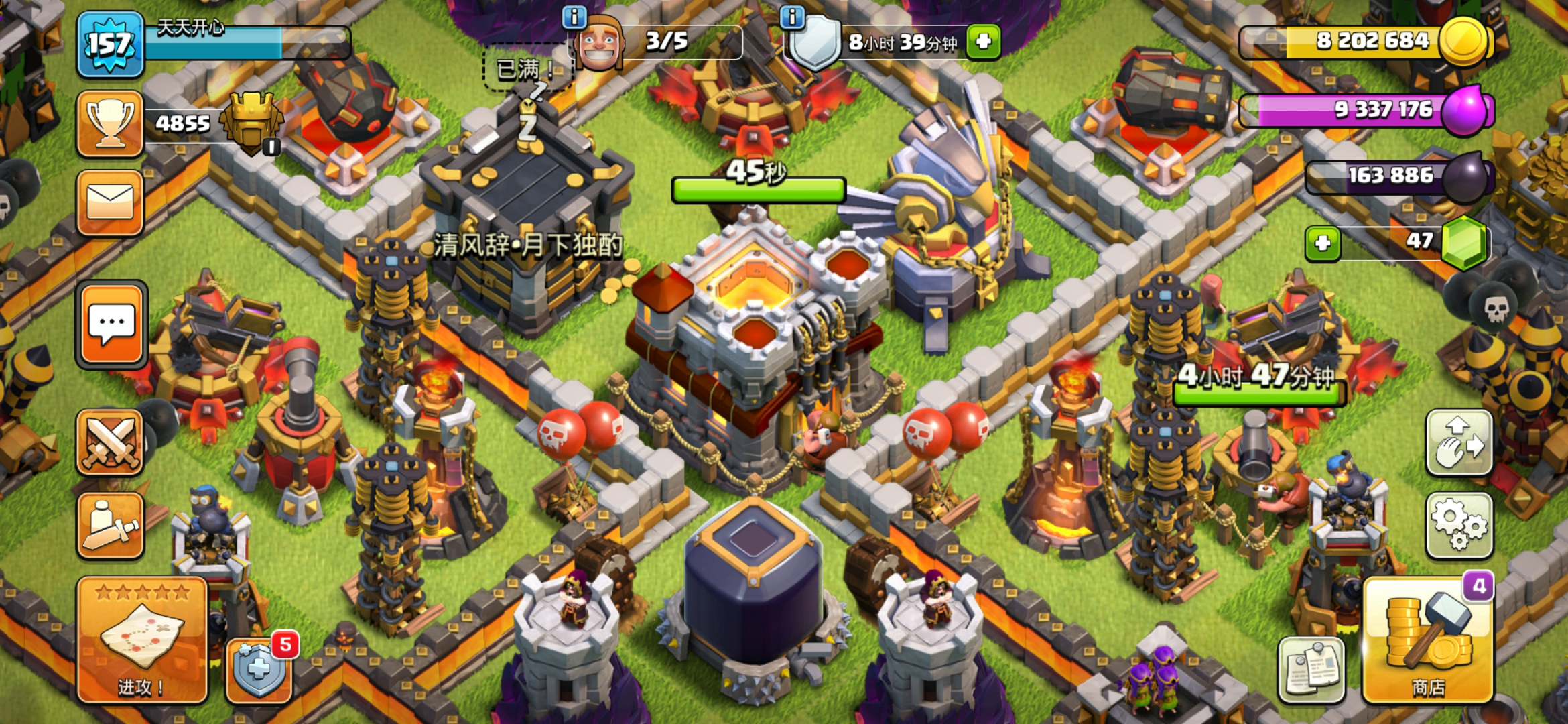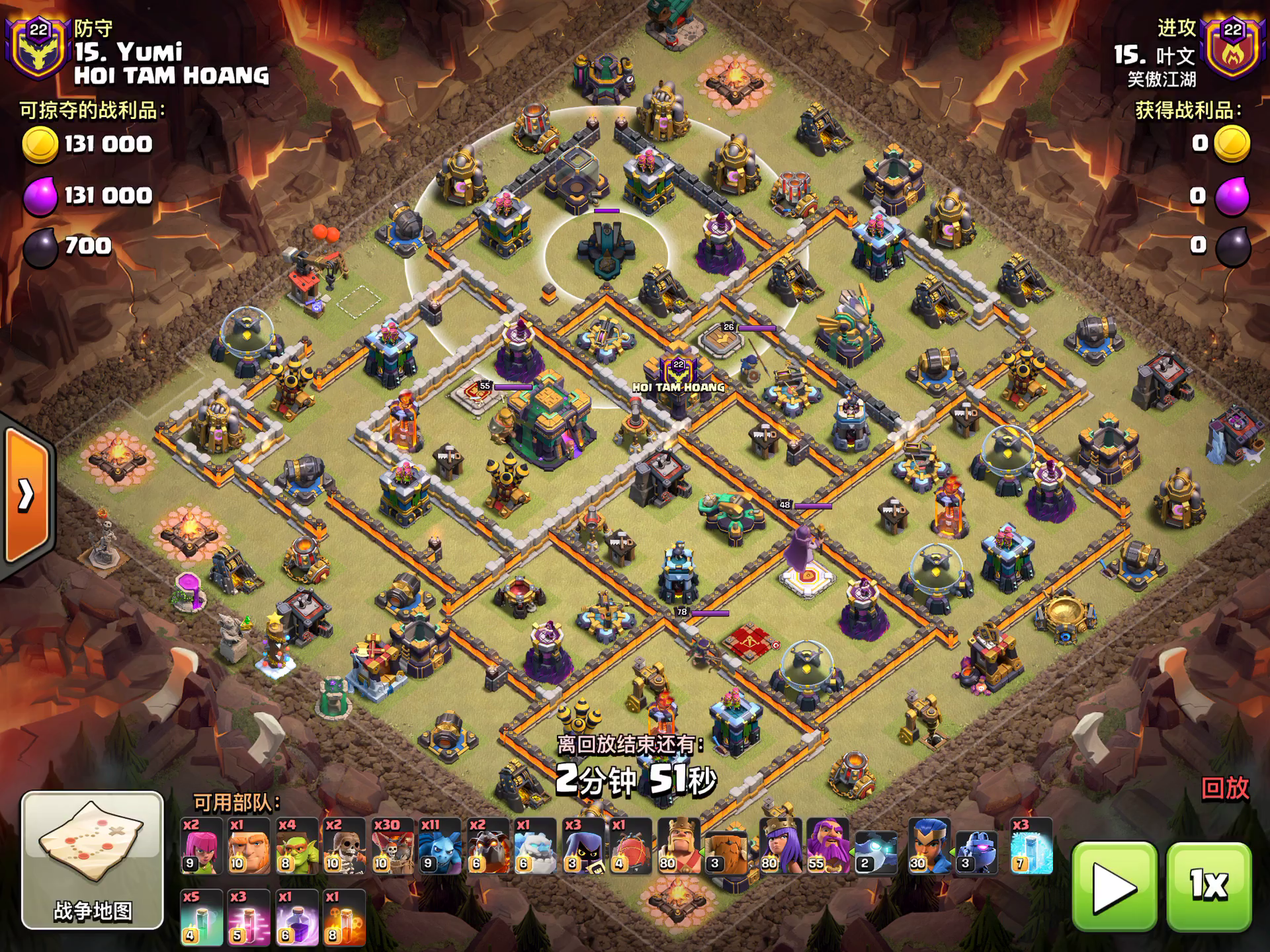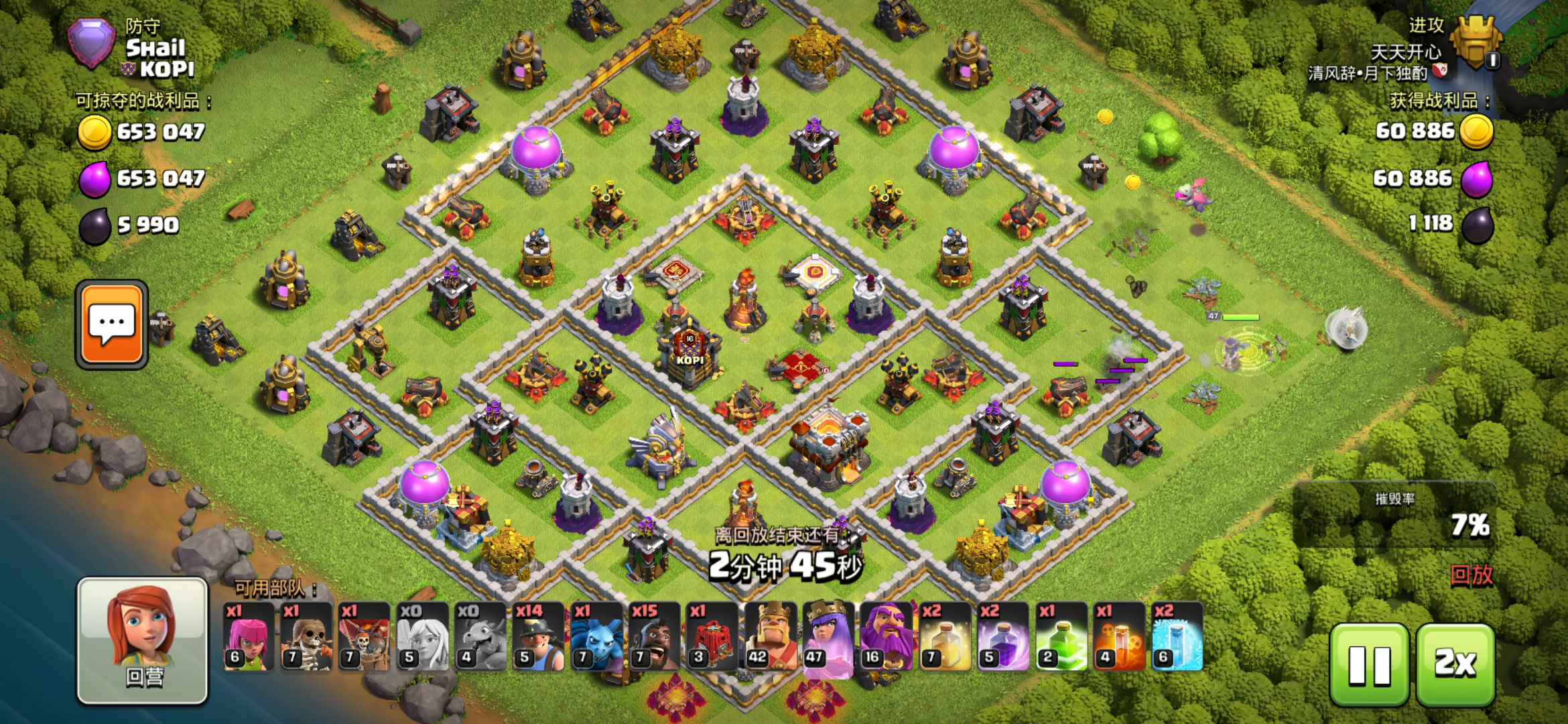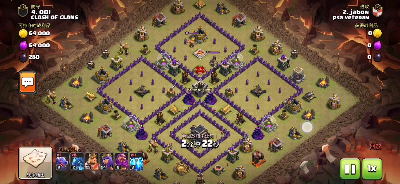 这次对阵的依然是速本的 一个速本十和一个速本九 这次的视频算是给待在七本一段时间的萌新老手们的攻略吧😁 十本没有地狱塔那么像视频上的情况,七本的可以思索了后,就去打一下 而对于九本,如视频上的,炸弹塔那个位置,如此密集的建筑那样就要发挥闪电范围伤害的优势,去封路让主力的龙群不飞偏,而对于空气炮,就集中气球去炸掉,万不得已的话,通常都禁忌正对空气炮 (前提必须下龙和劈雷很熟练了) 希望看了此视频的七本老手们以后看见类似这种速本的就不要怕,只要熟练透了,胆子还大的就打上去 我就是在七本和八本各个阶段玩龙流打了四年了,所以基本没任何顾虑😁 用时间来,慢慢就成大佬了,如果终身玩部落那急不得