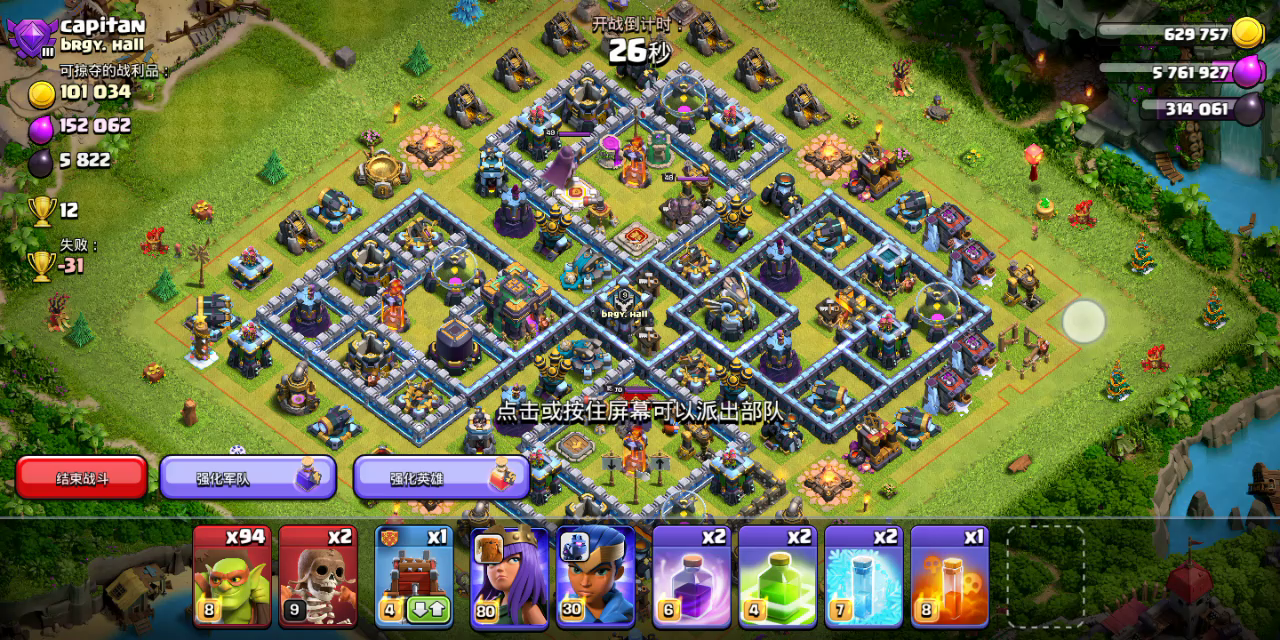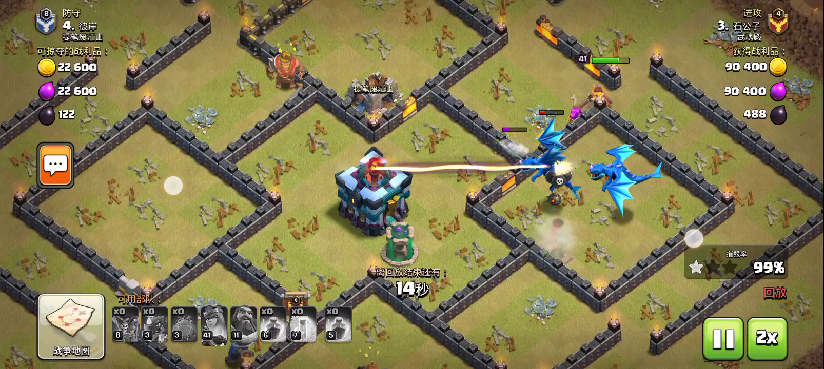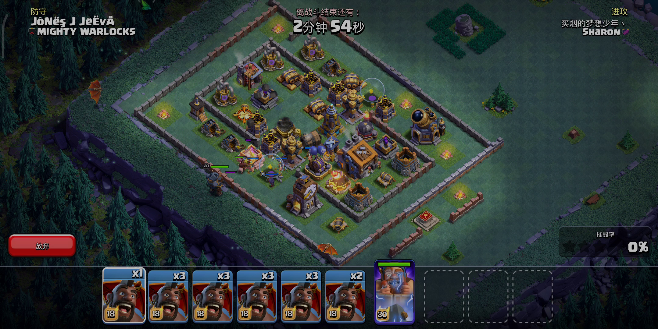 部落冲突夜世界常见四子长方口阵型,像那种阵型比较容易打,但前提要把兵分配好。