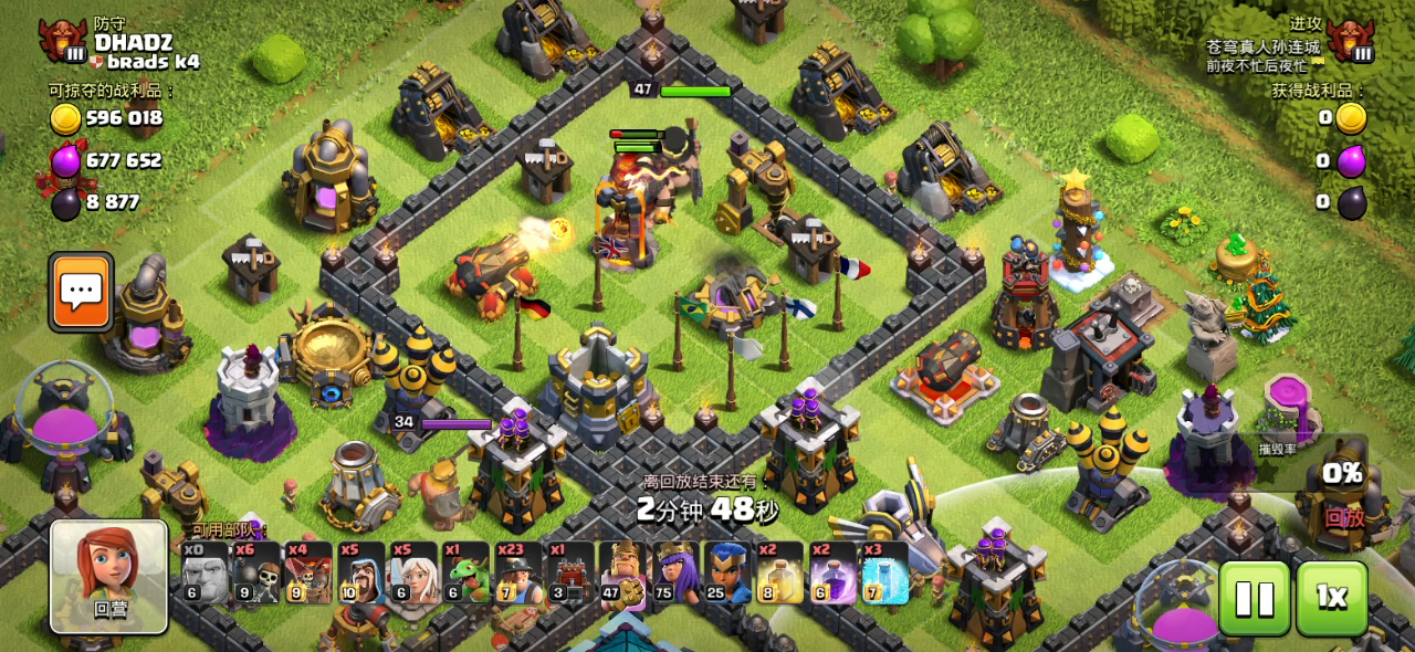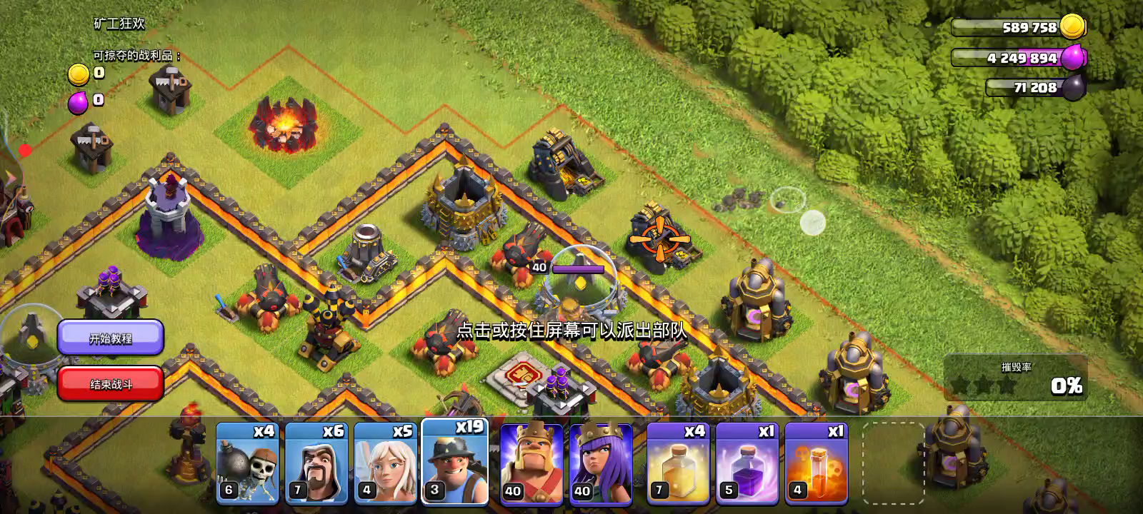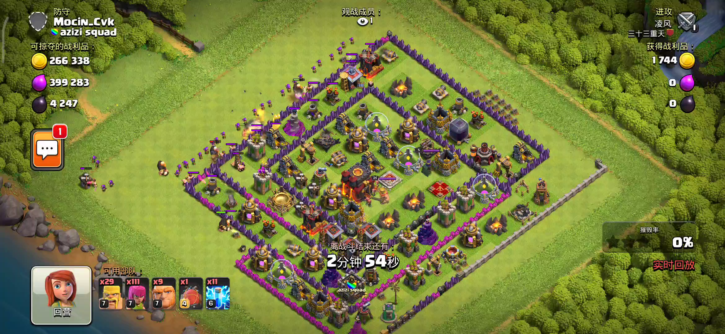 这是我打的第二把,我第1把是除了小兵,其他的英雄都下在了右下角,同一个地方,先让冰人扛伤害金身给那个投石炮,法术镜像,一个给冰人,一个给天使,毒药就给援兵就行。这看着是挺难的,其实挺简单的。还有录个屏上传花了300M流量心痛镜像都给天使也行