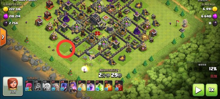暗黑重油兵种是家乡世界非常特殊的存在,他具有独特战斗力,威力也是毋庸置疑,这次我们就看看以黑油兵种蓝胖为主力的流派打法,看看他是如何破除三层环绕阵型,平推三星的吧!首先,我们来分析一下敌方阵型,对方处于十二本,防御较为完善,阵型较为分散,占地很大,采用的是多层回形阵型,并在四角有多个防御加固,最外围环绕着多个次要建筑,能有效地引导和拖延敌军的进攻,内圈与外圈间隔较远,保持了较好的安全距离,中心圈