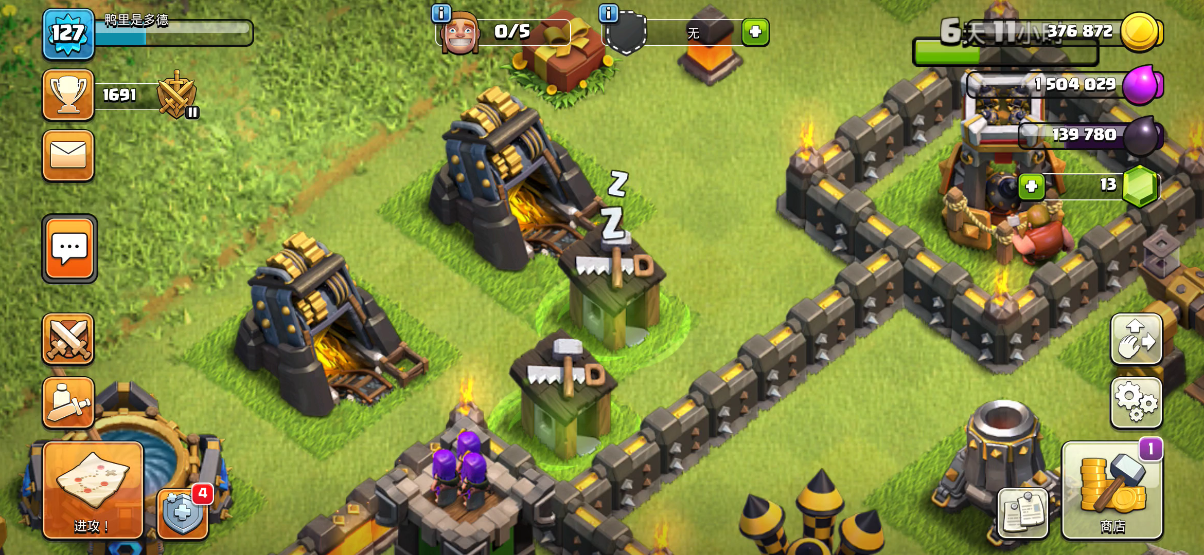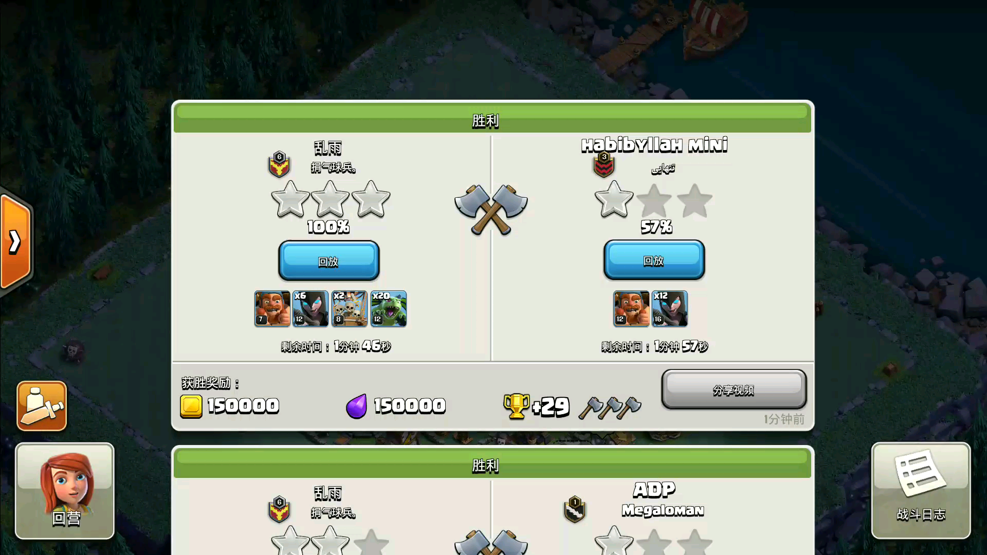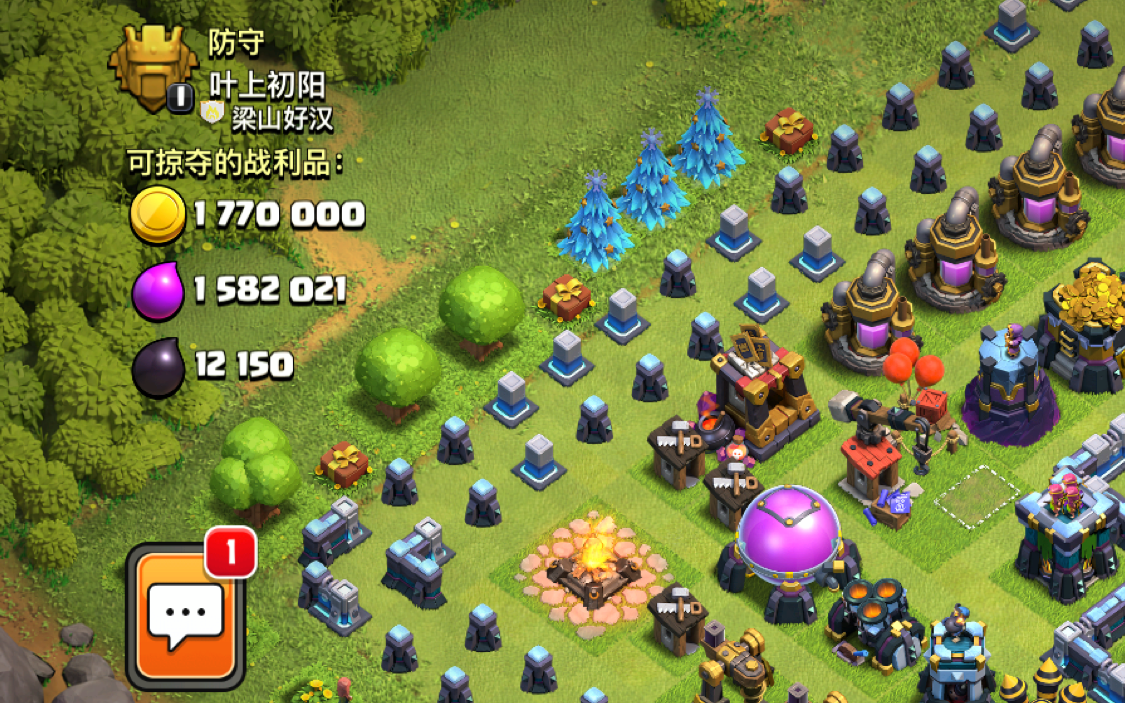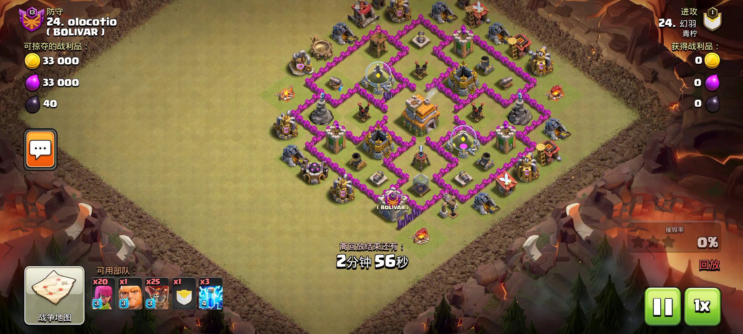 6号鸟炮2级,所以和城堡的血量都是4400,6闪一震就够了。美中不足的是没有打掉2点的采集器,让蛮王跑出来了,不过不必在意这些小细节😁