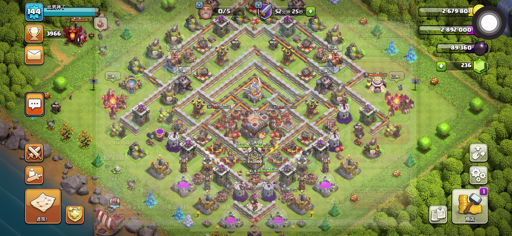 所以说别升级太快,要一步一个脚印的来,刚开始玩不懂啥,废了一个号,时隔四年又重新入坑继续开始做肝帝,肝到爆,九本所有科技,兵种通通升级到最高,以后再说十本的事,这样玩起来才能有意思。