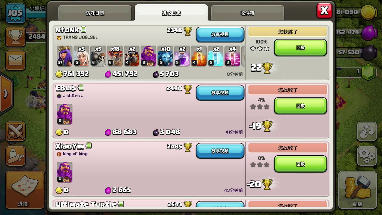 最近疯狂学习狗球。。。有的阵真的很不适合打狗球。。心累。。。。最近打联赛去了分部,超级部队捐兵不是很理想。。。任务没得做呜呜呜555~